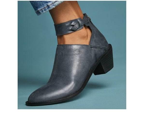 Women Cut Out Booties Buckle Strap Back Zipper Leather Ankle Casual Boots Female Shoes Calzado Mujer