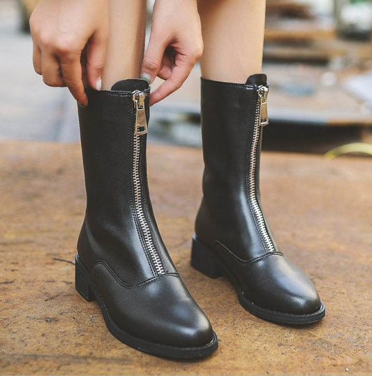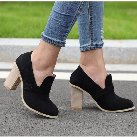 British retro thick with belt buckle boots high heel elastic women's booties - Mubimart