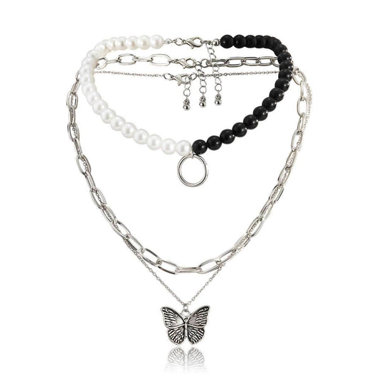 Punk Color Contrast Cross Chain Necklace Women - Mubimart