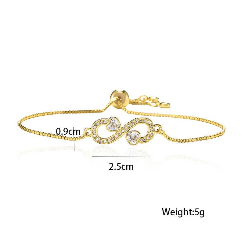 Pull Adjustable Brass Micro-set Zircon Heart Infinity Charm Bracelet Women