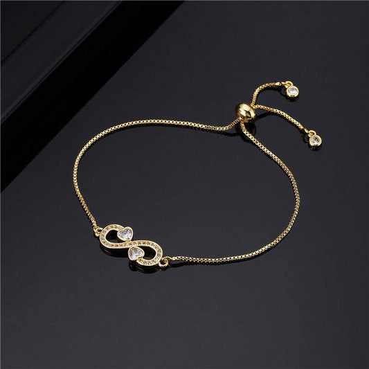 Pull Adjustable Brass Micro-set Zircon Heart Infinity Charm Bracelet Women