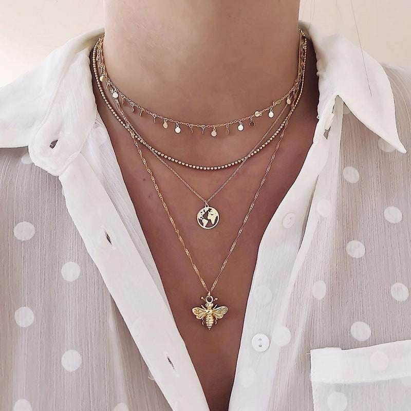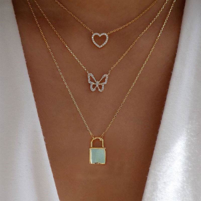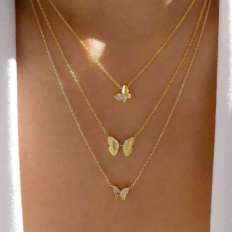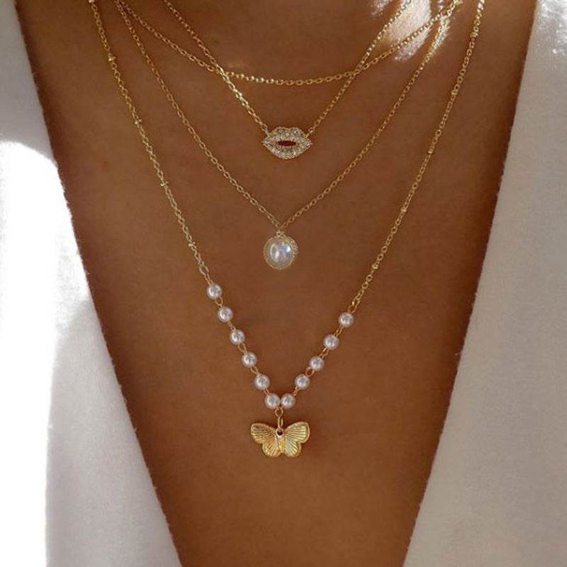 17KM-Multilayer Butterfly Pearl Necklace For Women Gold Pearl Choker Sun Star Jewelry Gift