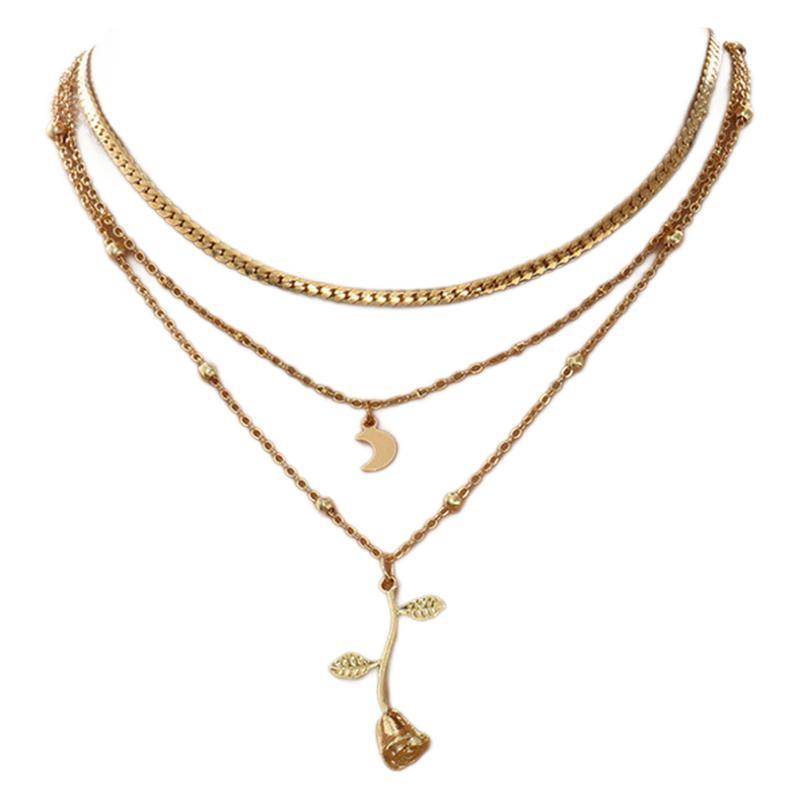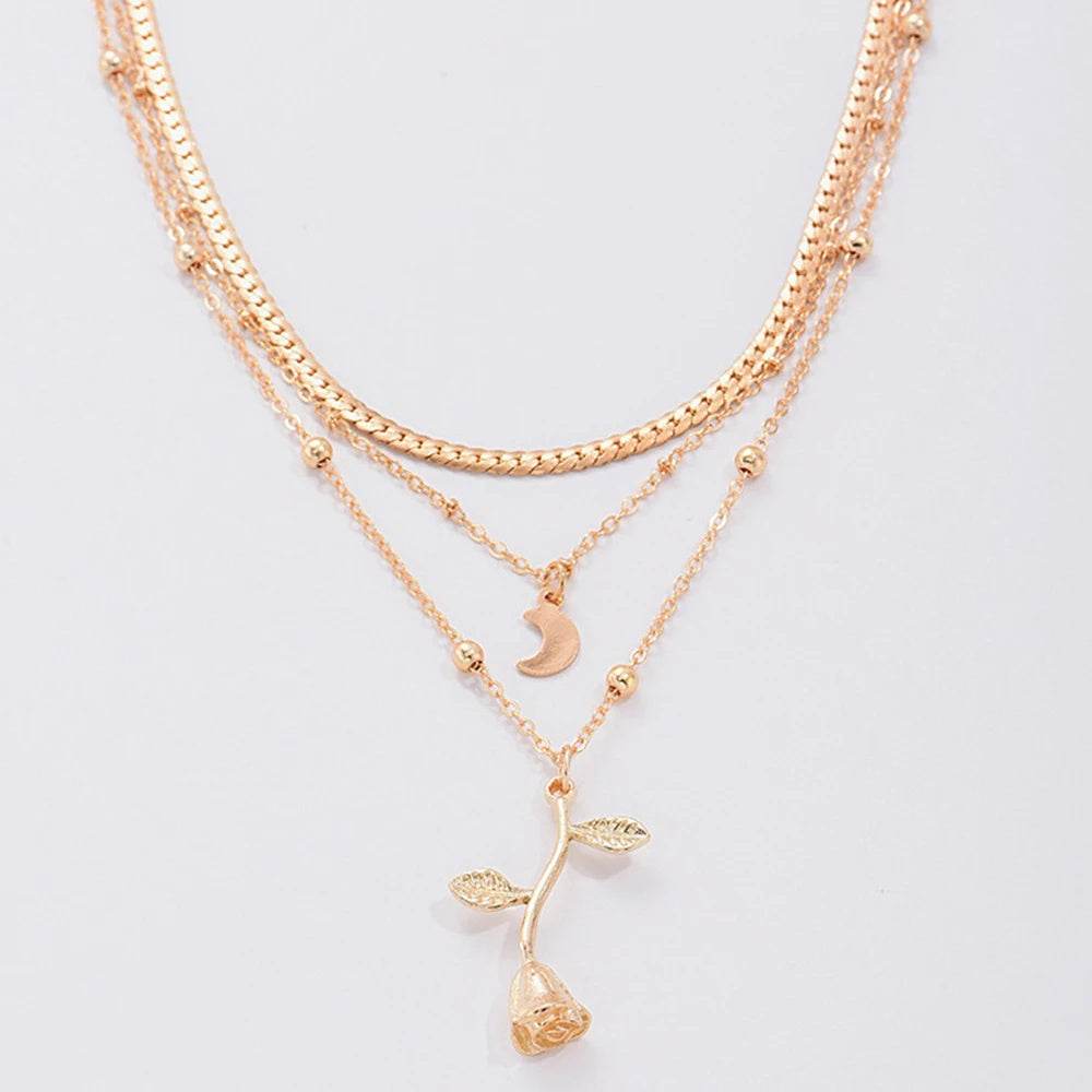 Bohemia Multilayer Moon Gold Color Pendant Necklaces For Women Rose Flower Choker Necklace 2025 Fashion Jewelry Party Gift Valentine's Day Gifts
