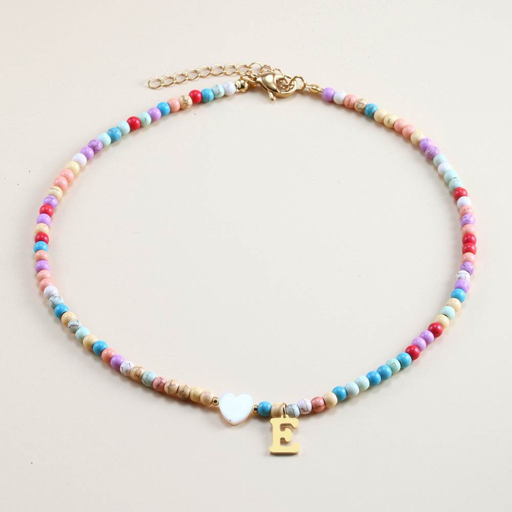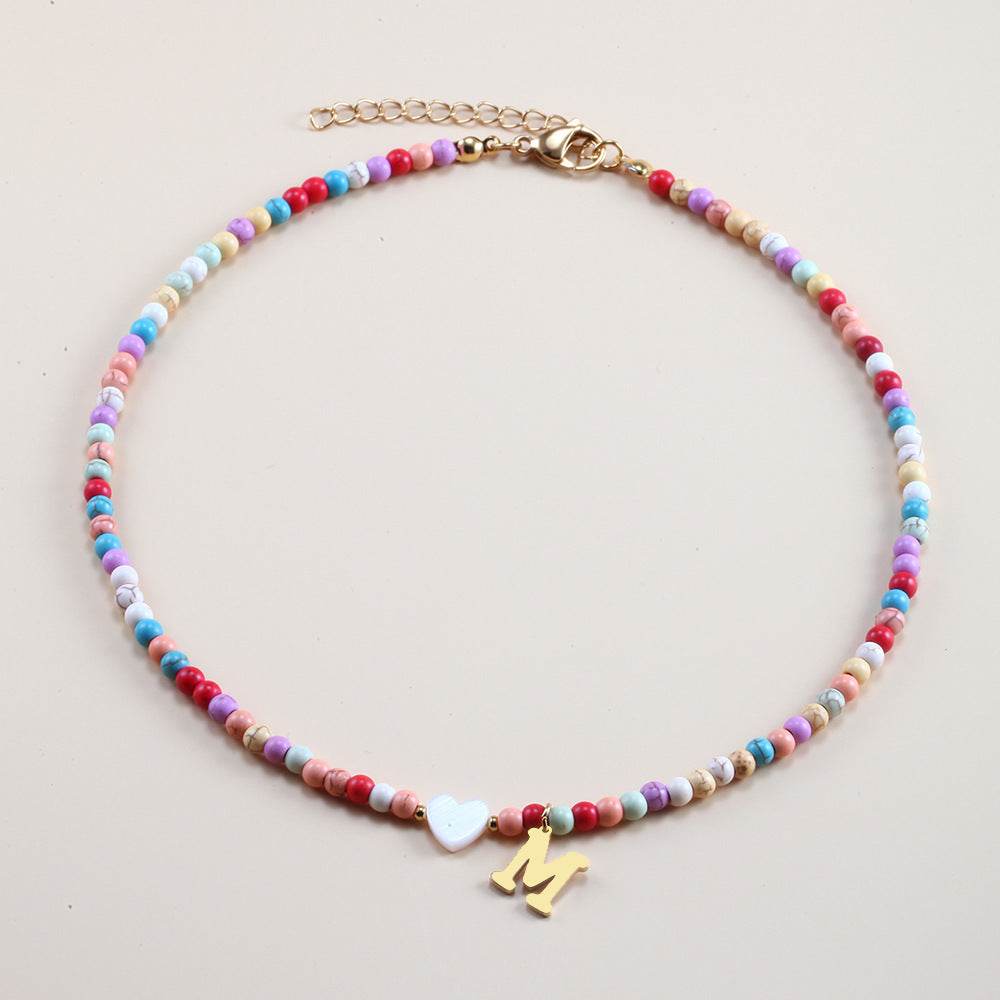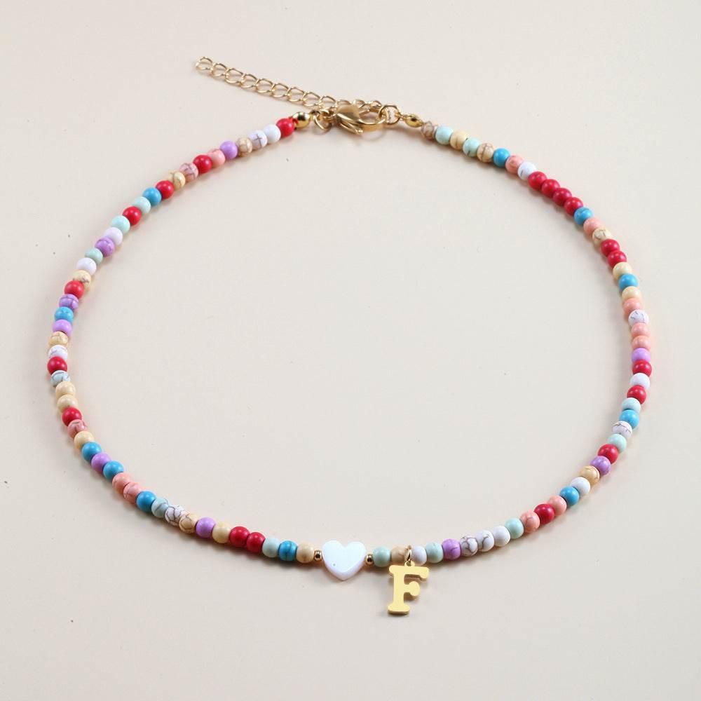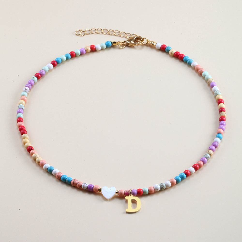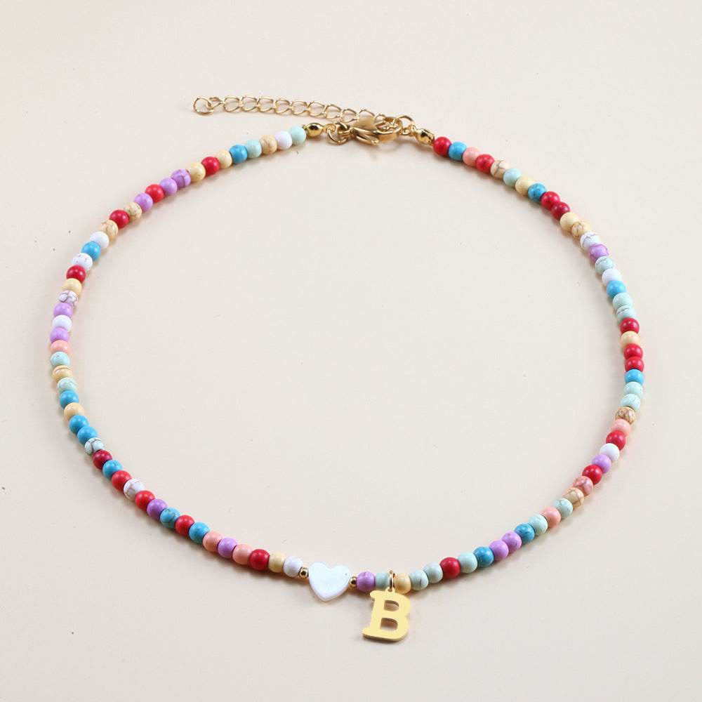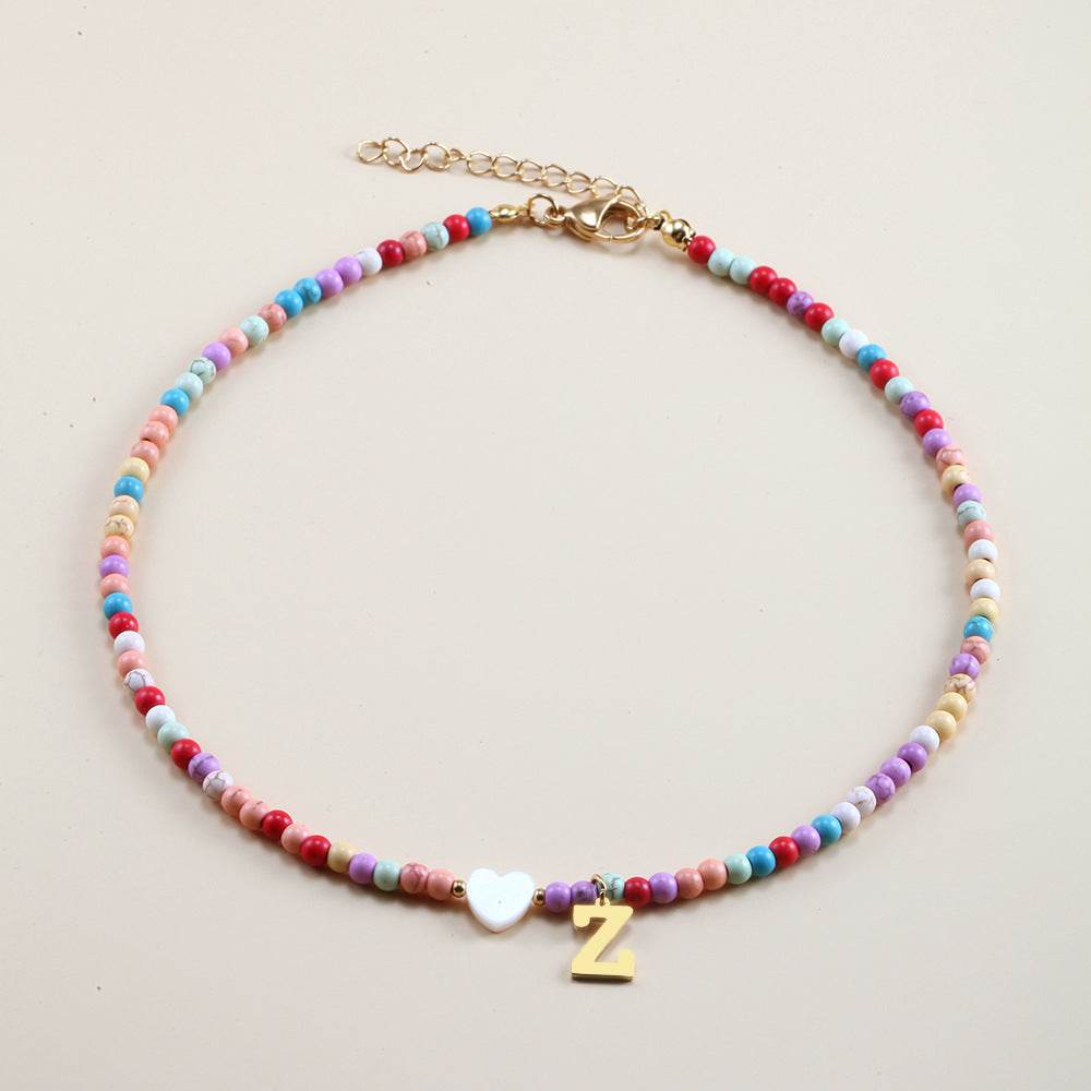 Colorful Beads Initial Choker For Women Stainless Steel Lett