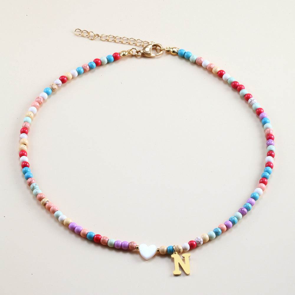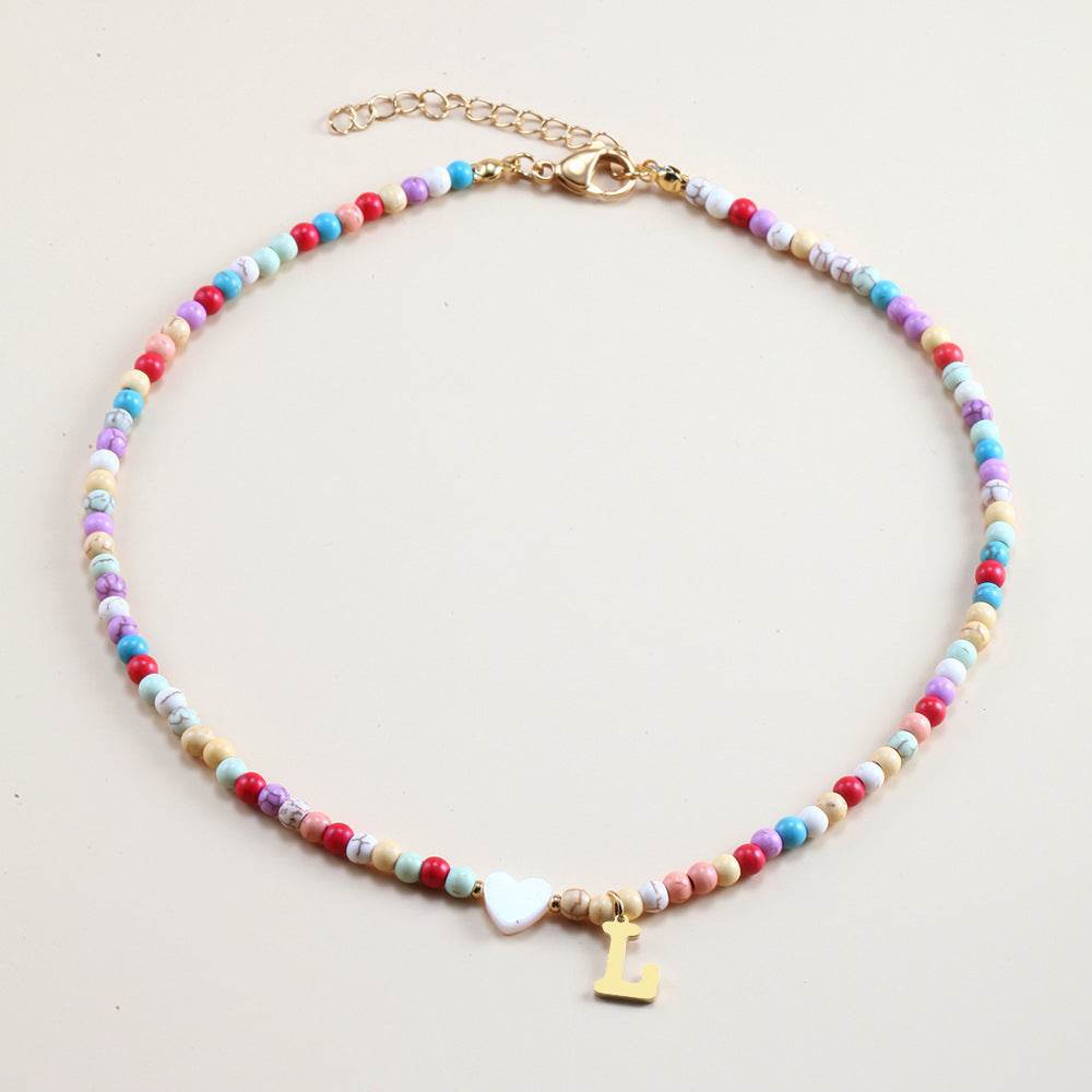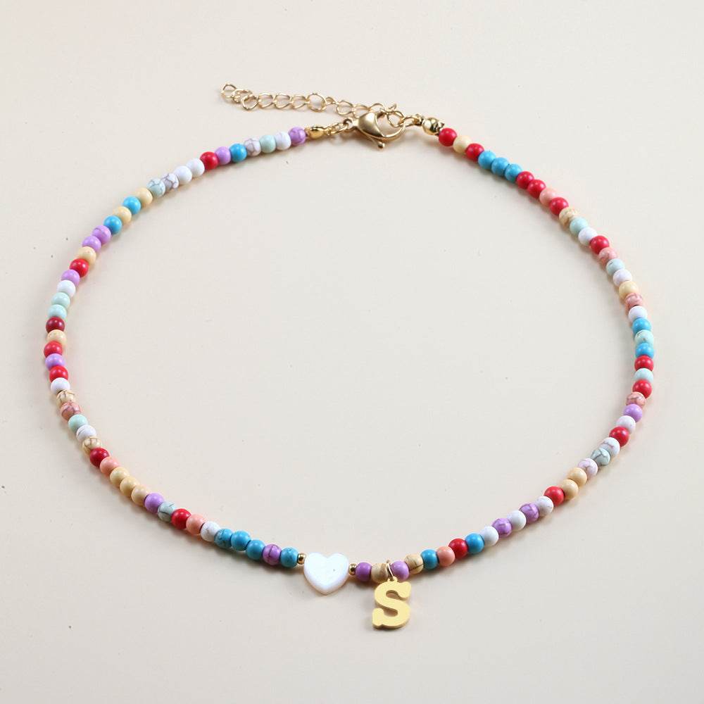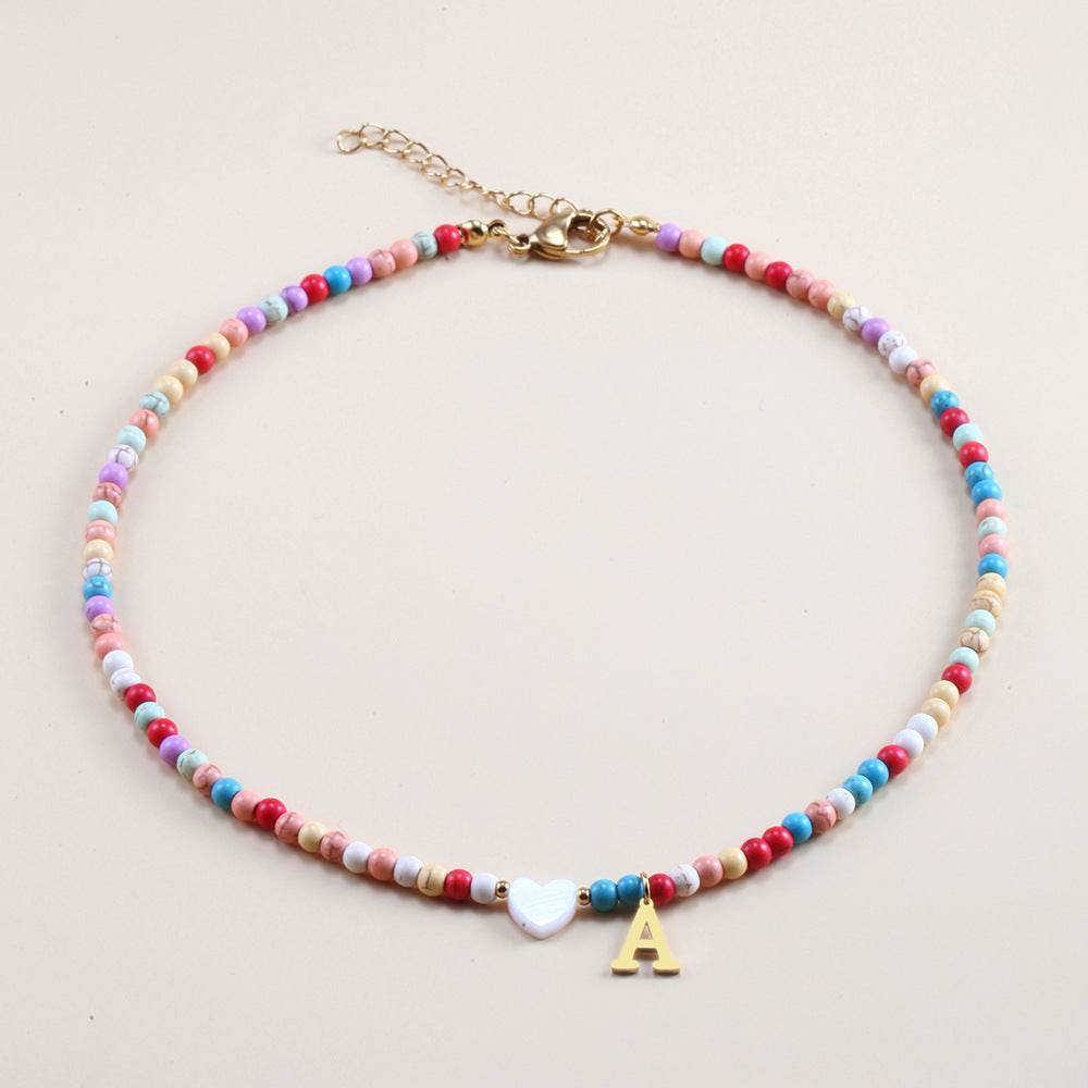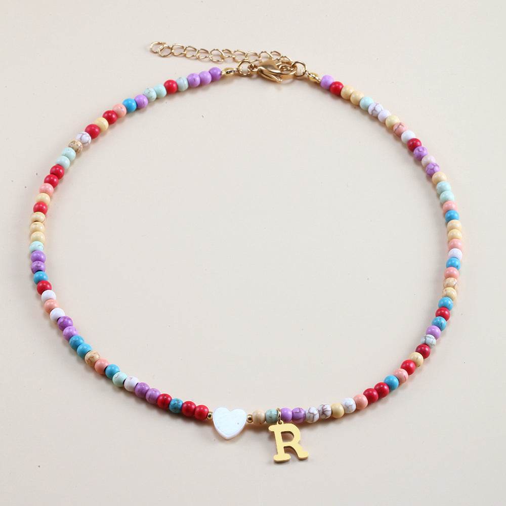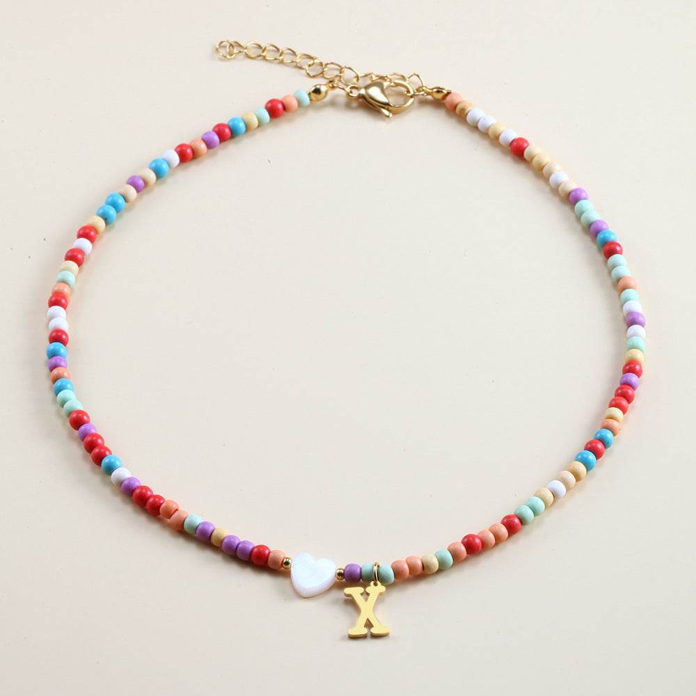 Colorful Beads Initial Choker For Women Stainless Steel Lett