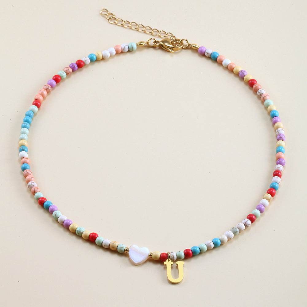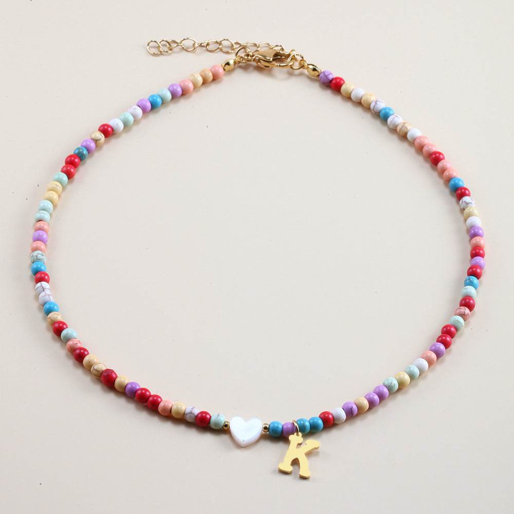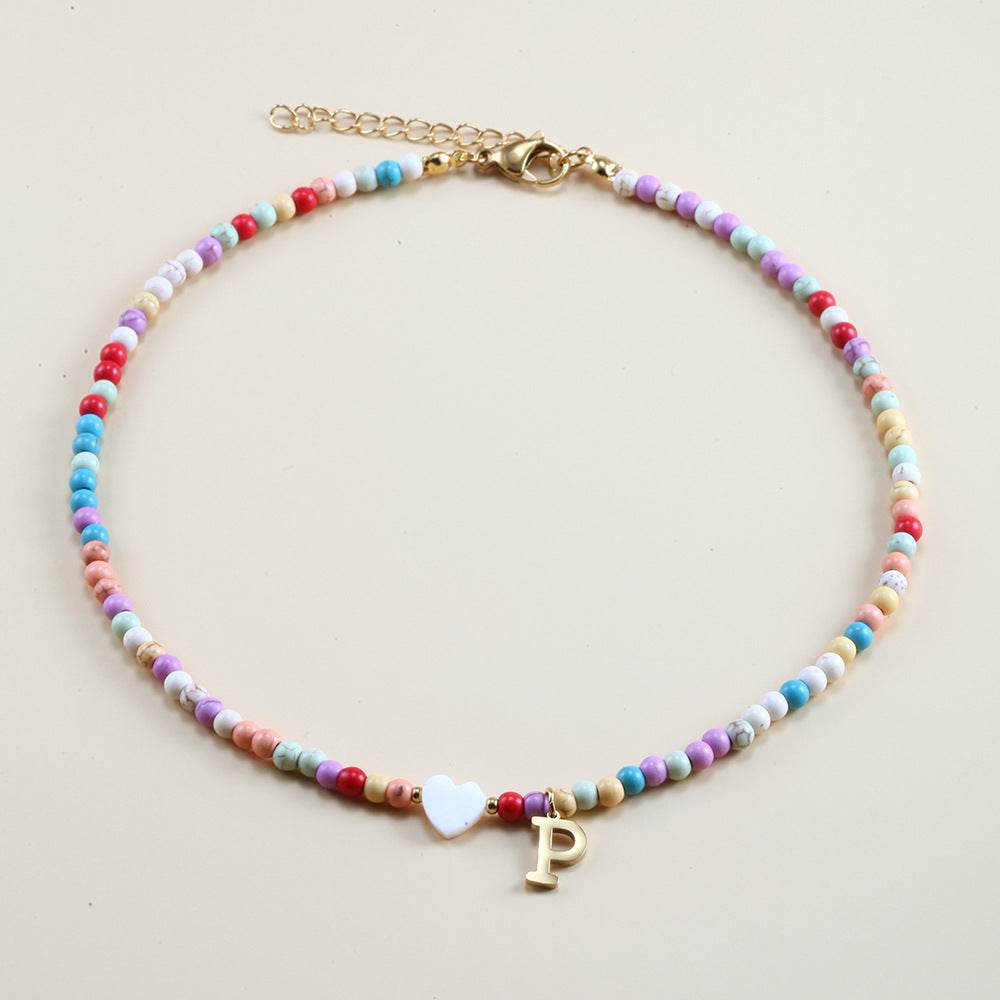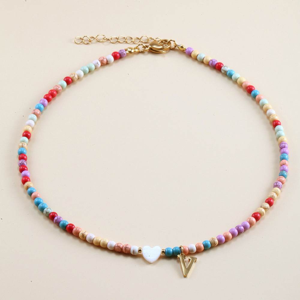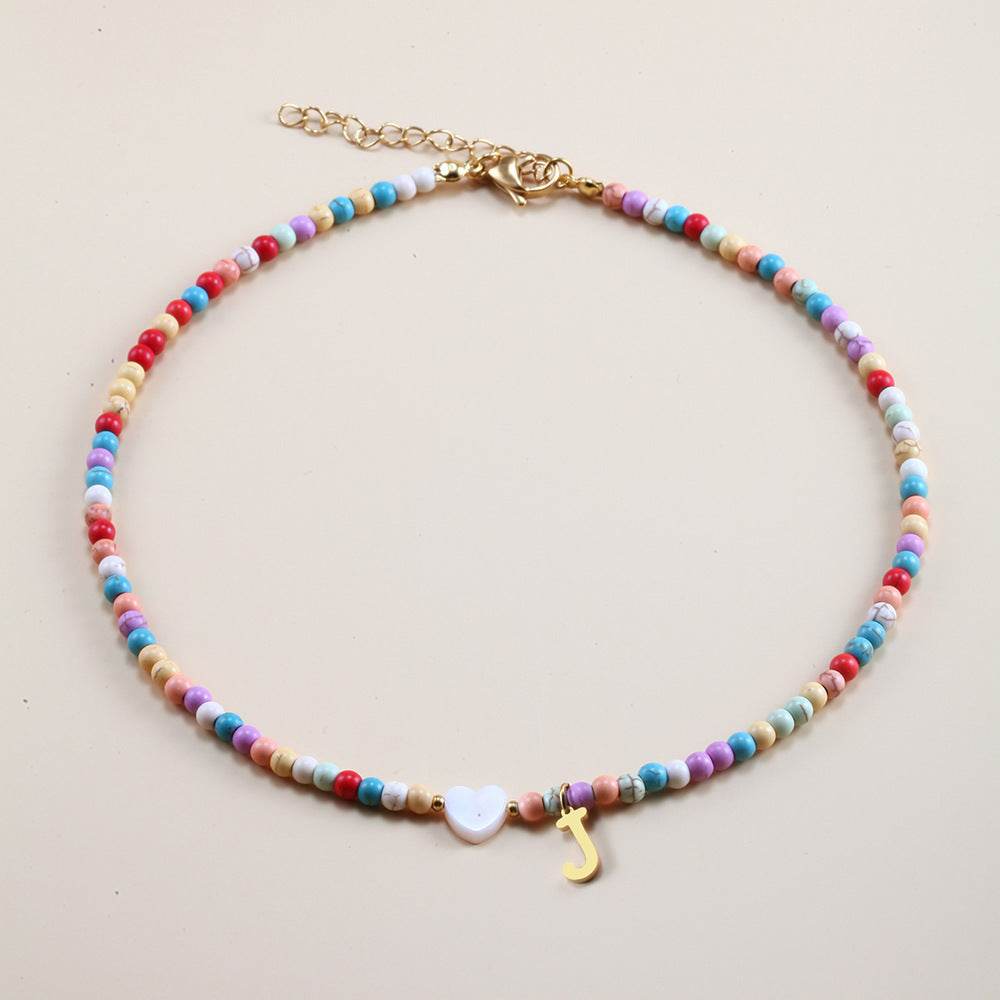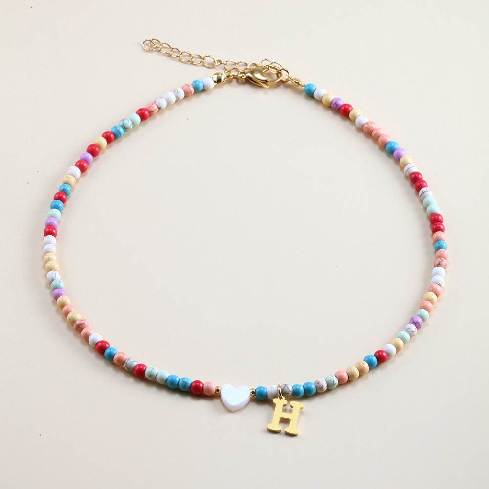 Colorful Beads Initial Choker For Women Stainless Steel Lett