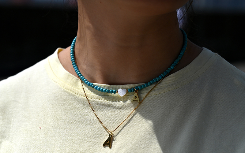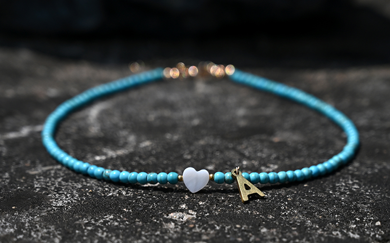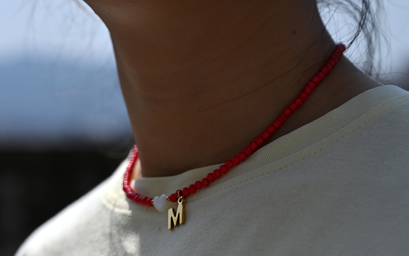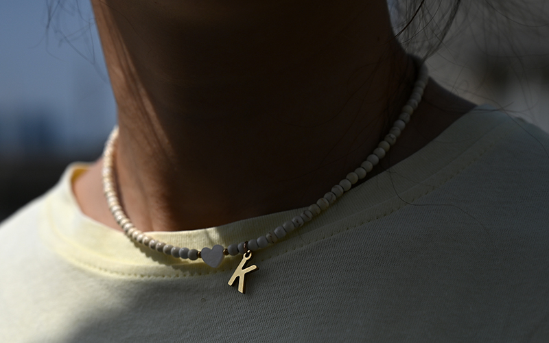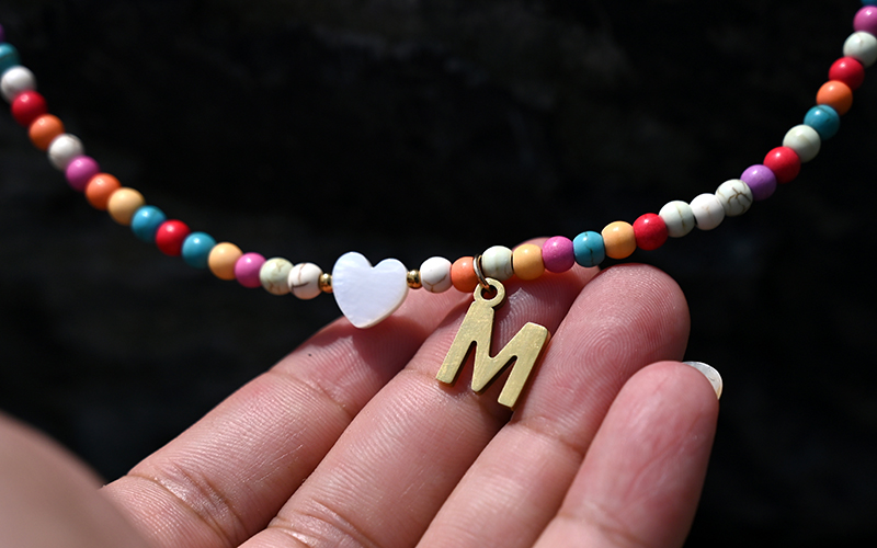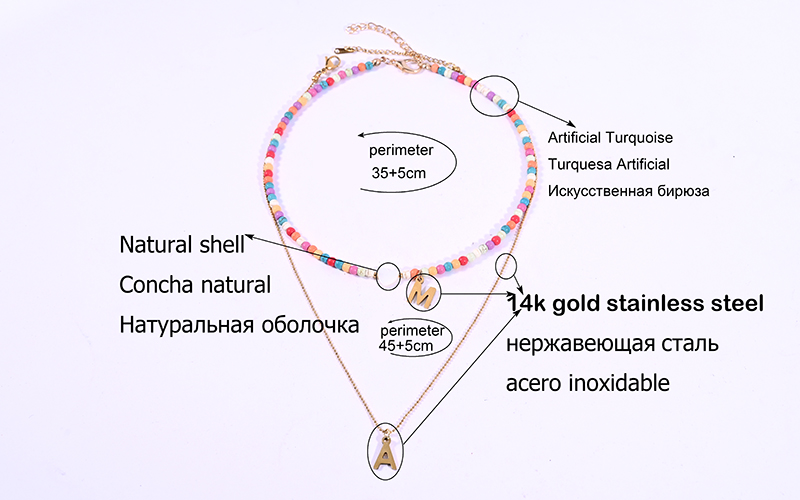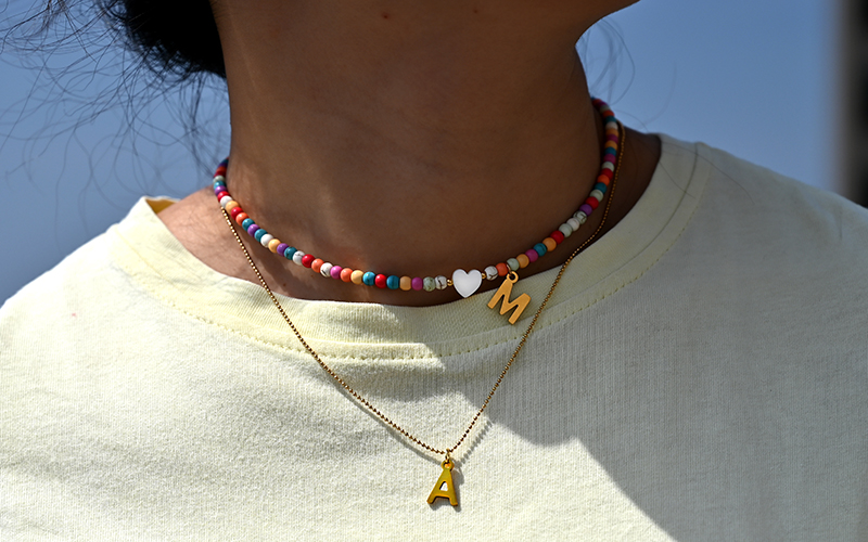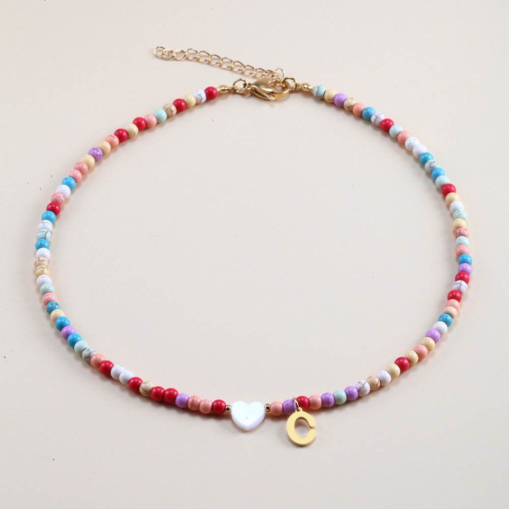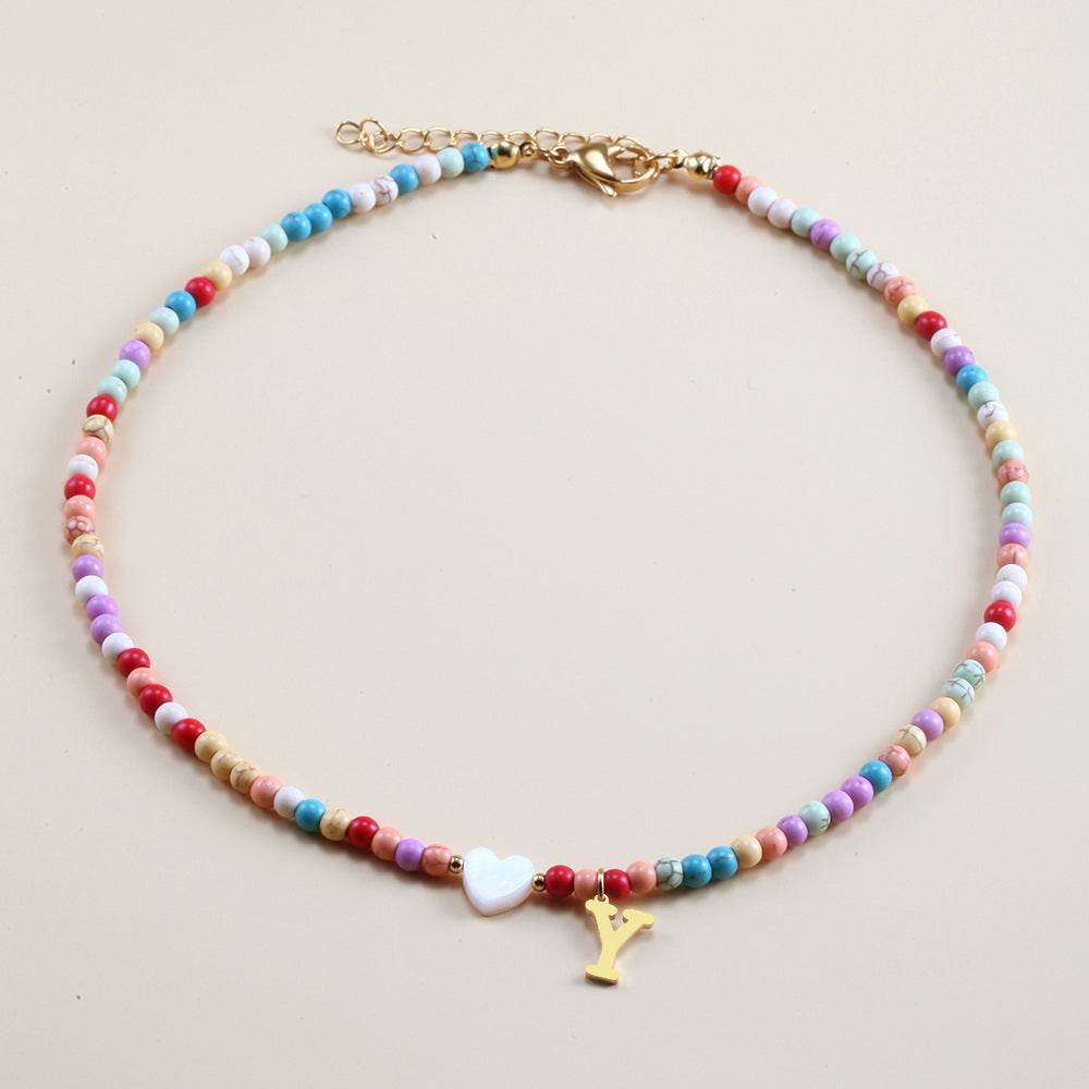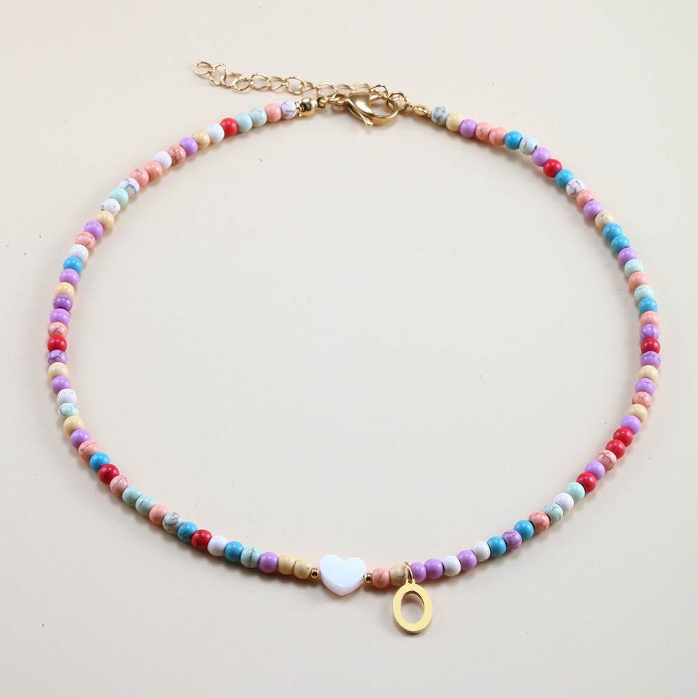 Colorful Beads Initial Choker For Women Stainless Steel Lett
