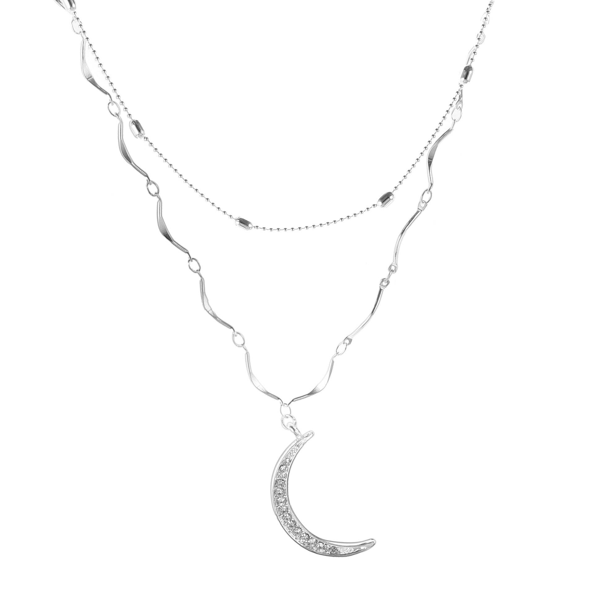 Double Chain Crystal Moon Choker Pendant Women - Mubimart