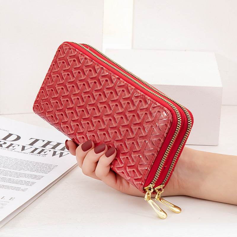 Large Capacity Double Layer Bright Leather Striped Mobile Phone Bag