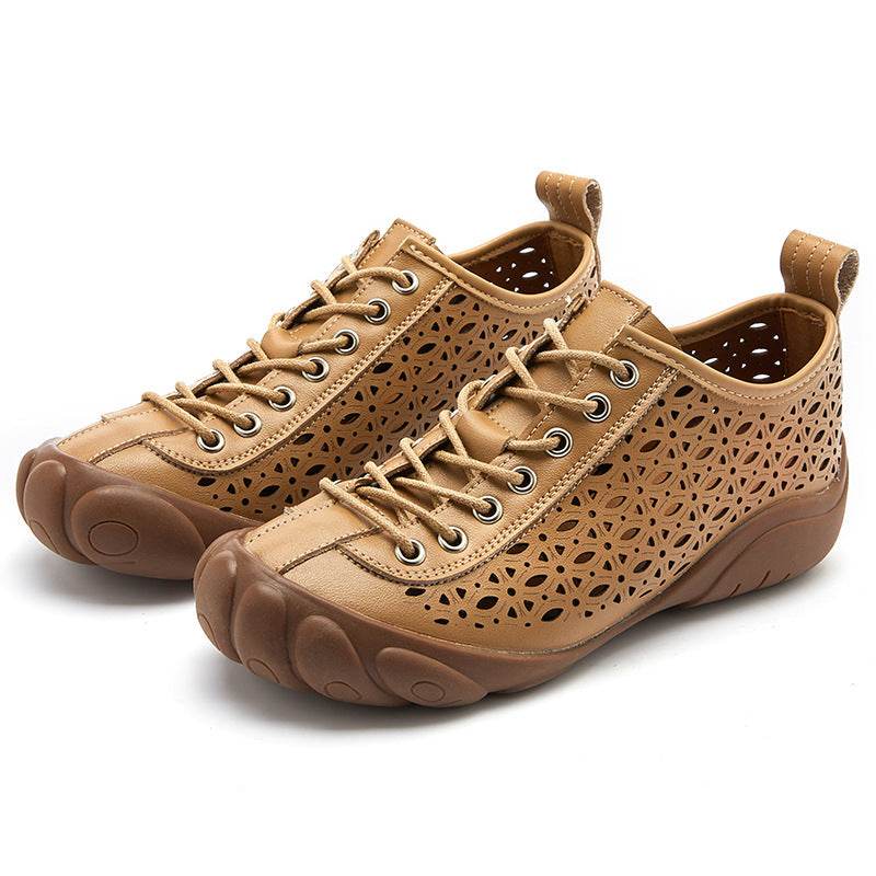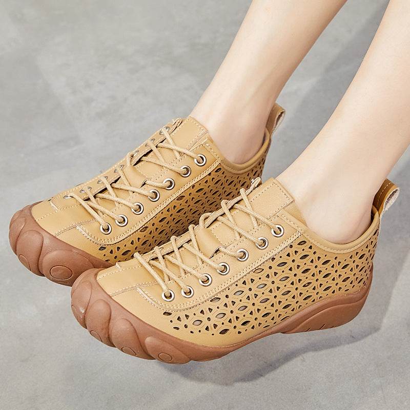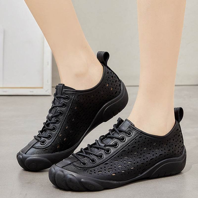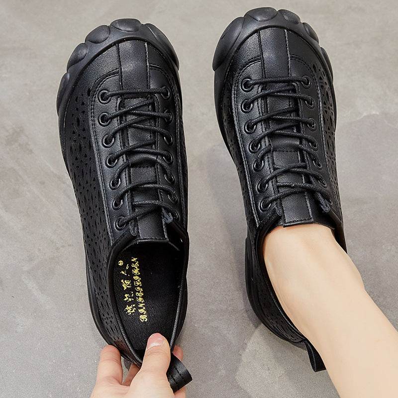 Leather Hollow Rubber Sole 3cm Comfort Shoes