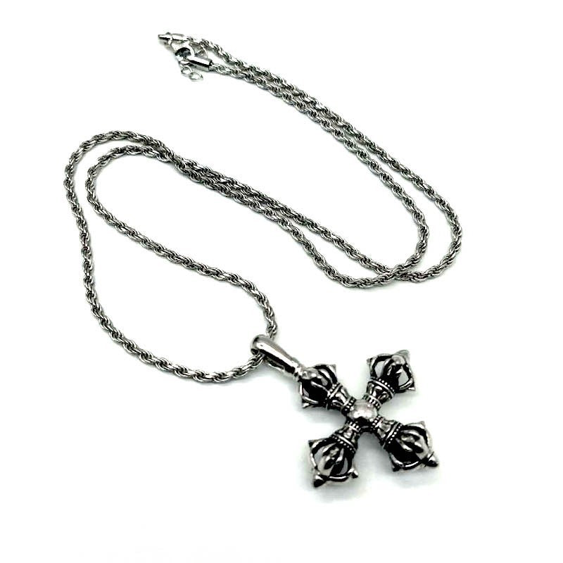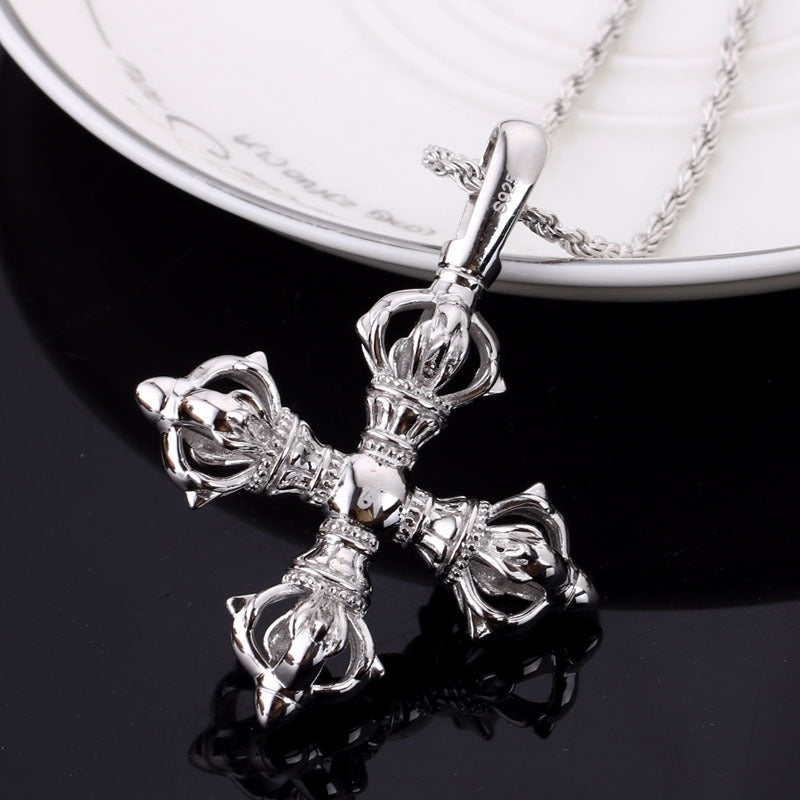 925 Silver Cross Vajra Pestle Five Pendant Men's And Women's Necklaces