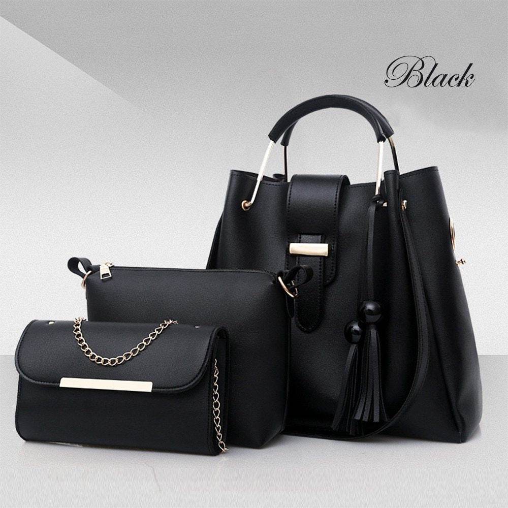 Women 3Pcs Or Set Handbags PU Leather Shoulder Bags Casual Tote Bag Tassel Metal Handle Designer Composite Bags