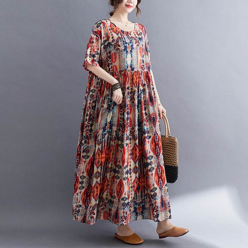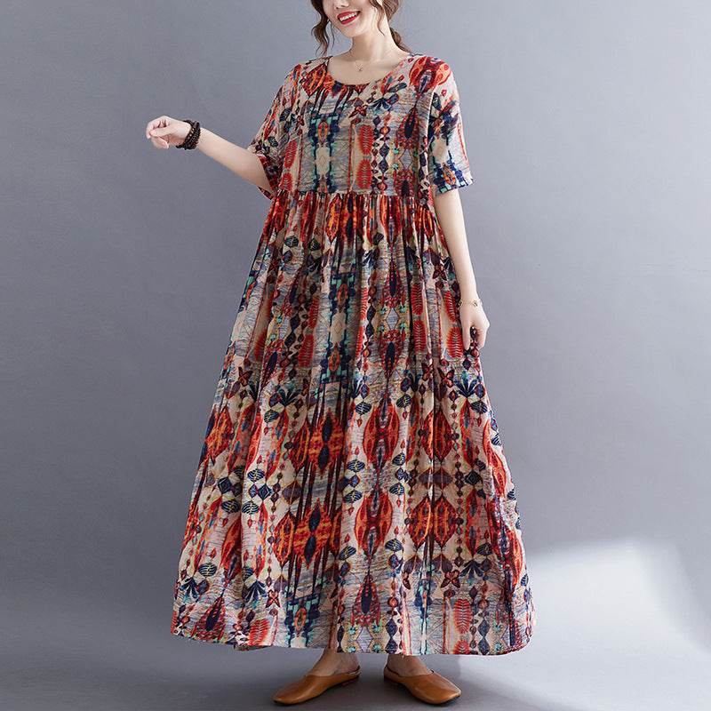 Artistic Plus Size Printed Short Sleeve Dress For Women