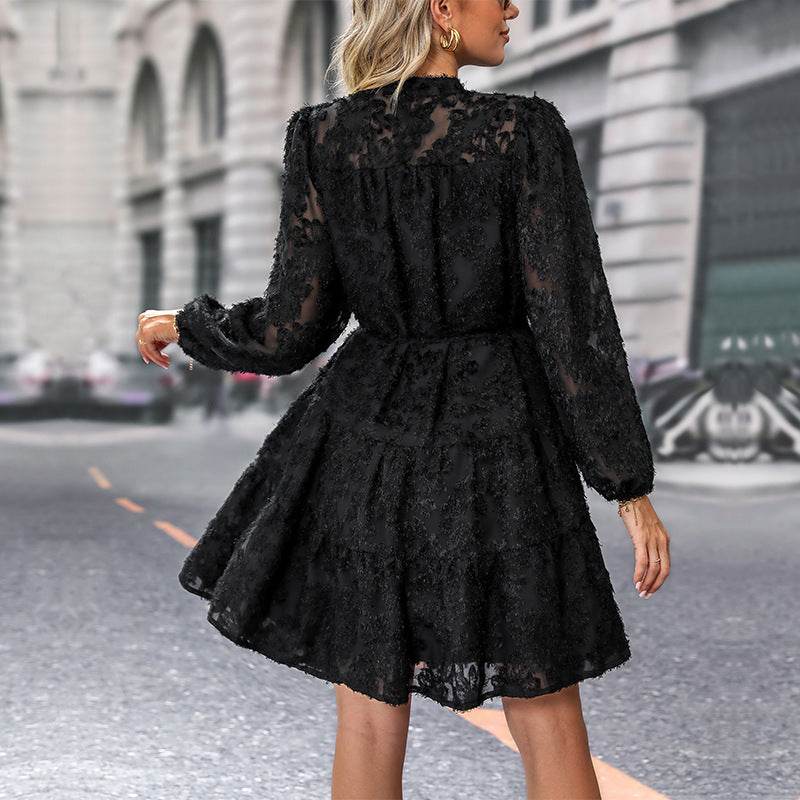 Lace Tied Long Sleeve Dress Fashion Medium Length Dresses Womens Clothing