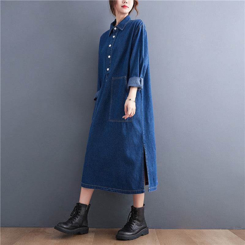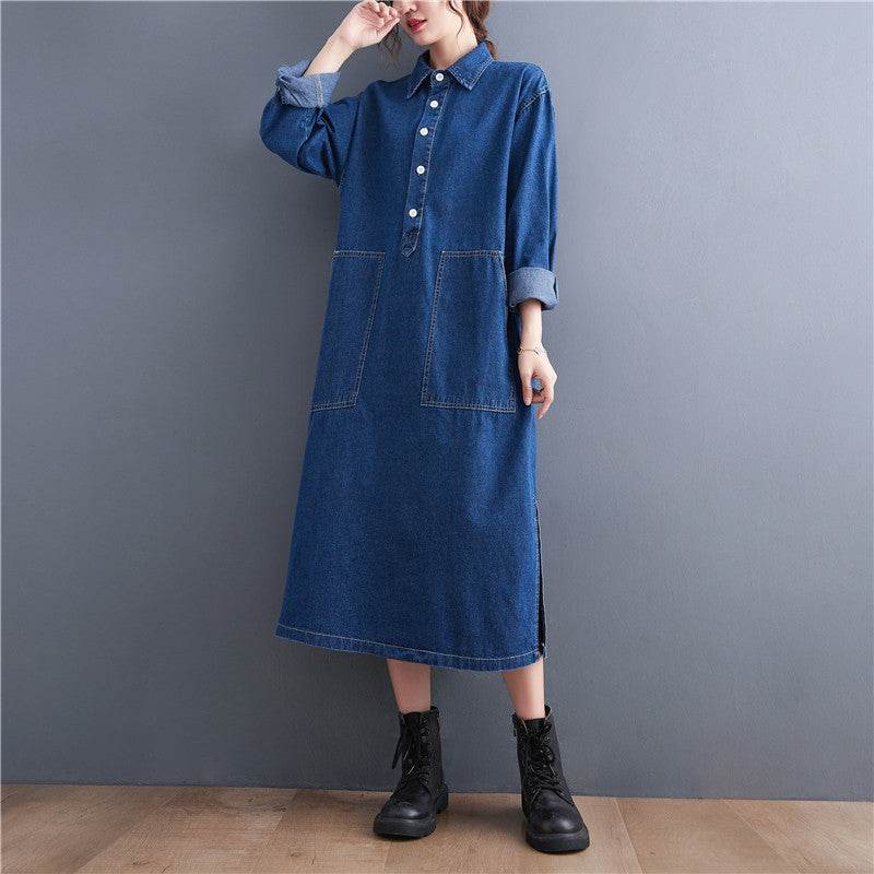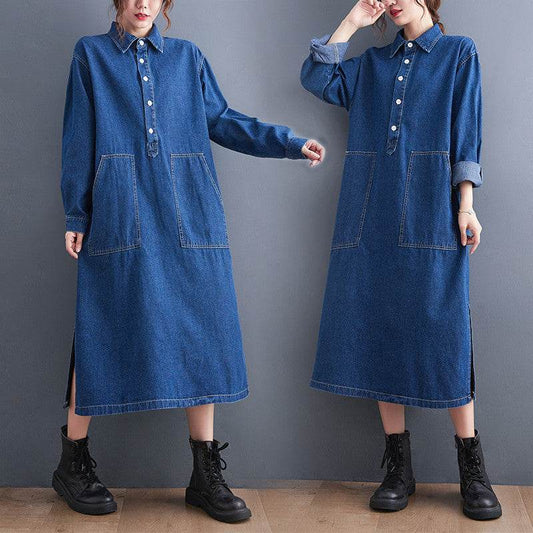 Large Size Denim Long Sleeve Pullover Dress Girl - Mubimart