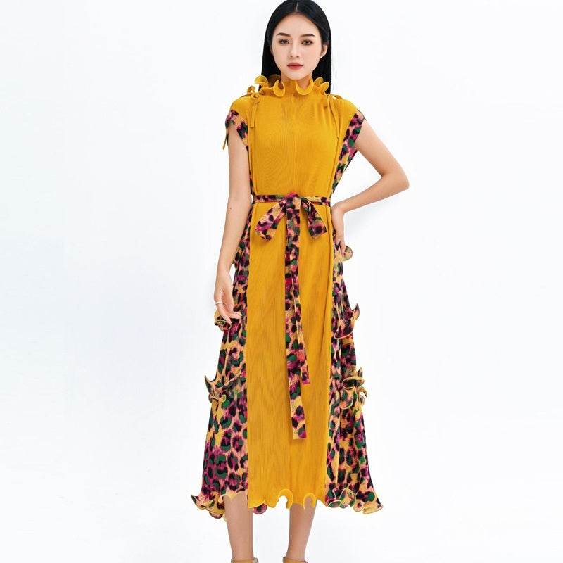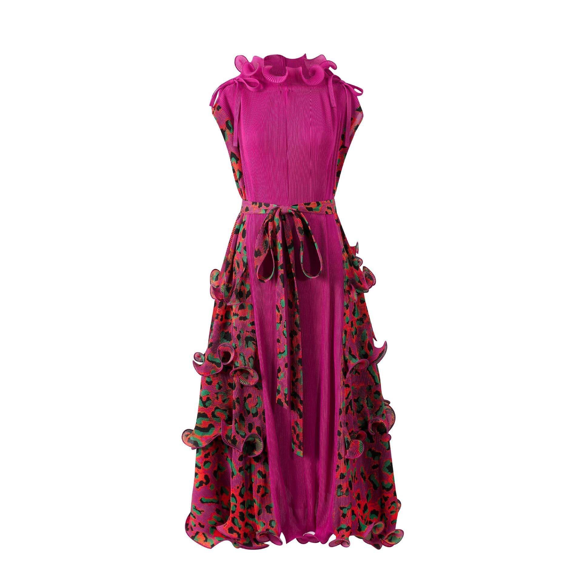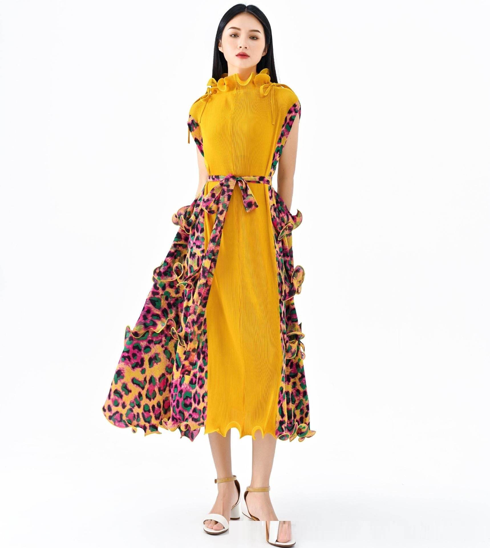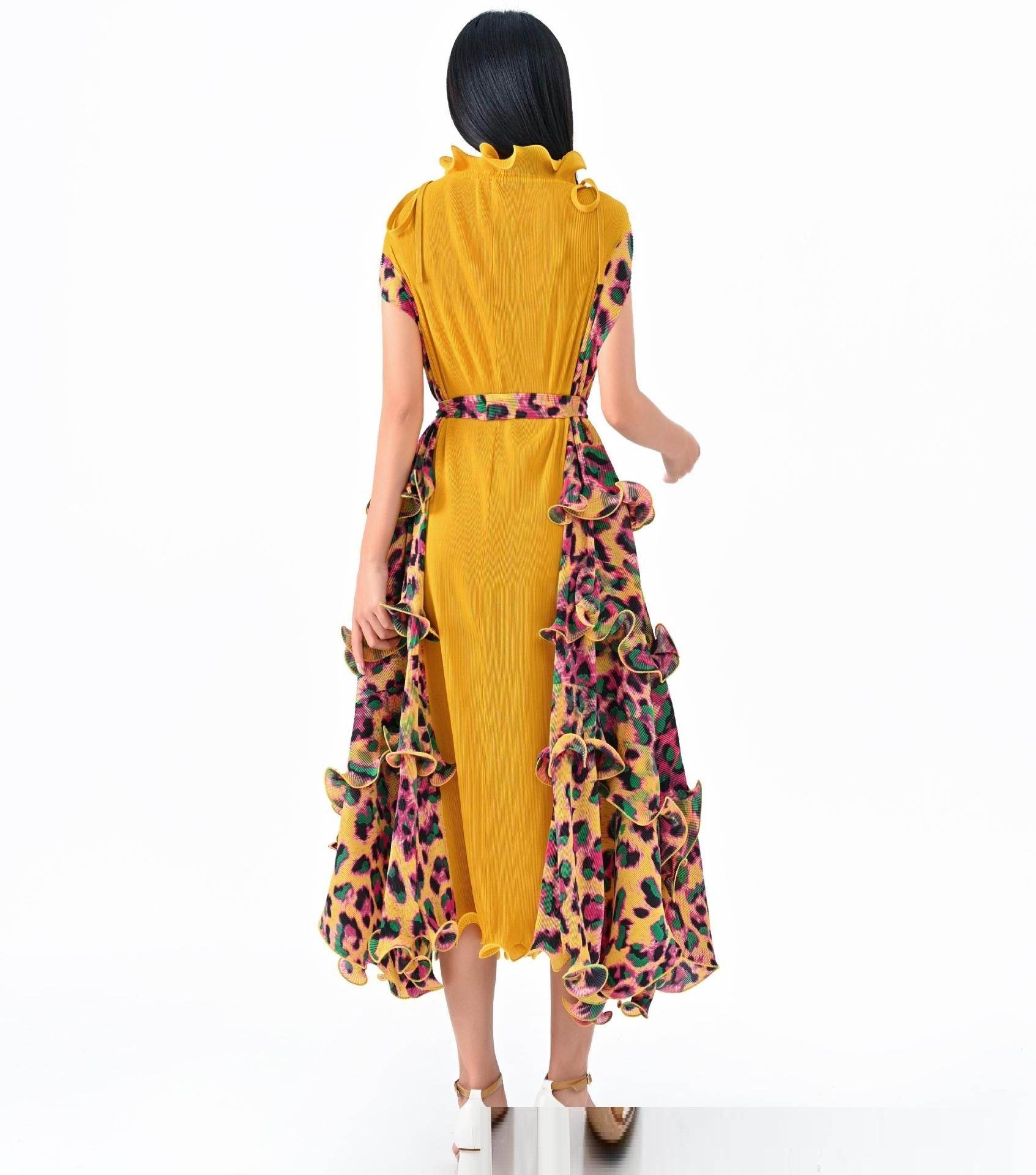 Leopard Print Plus Size Casual Dress Three-dimensional Ruffles