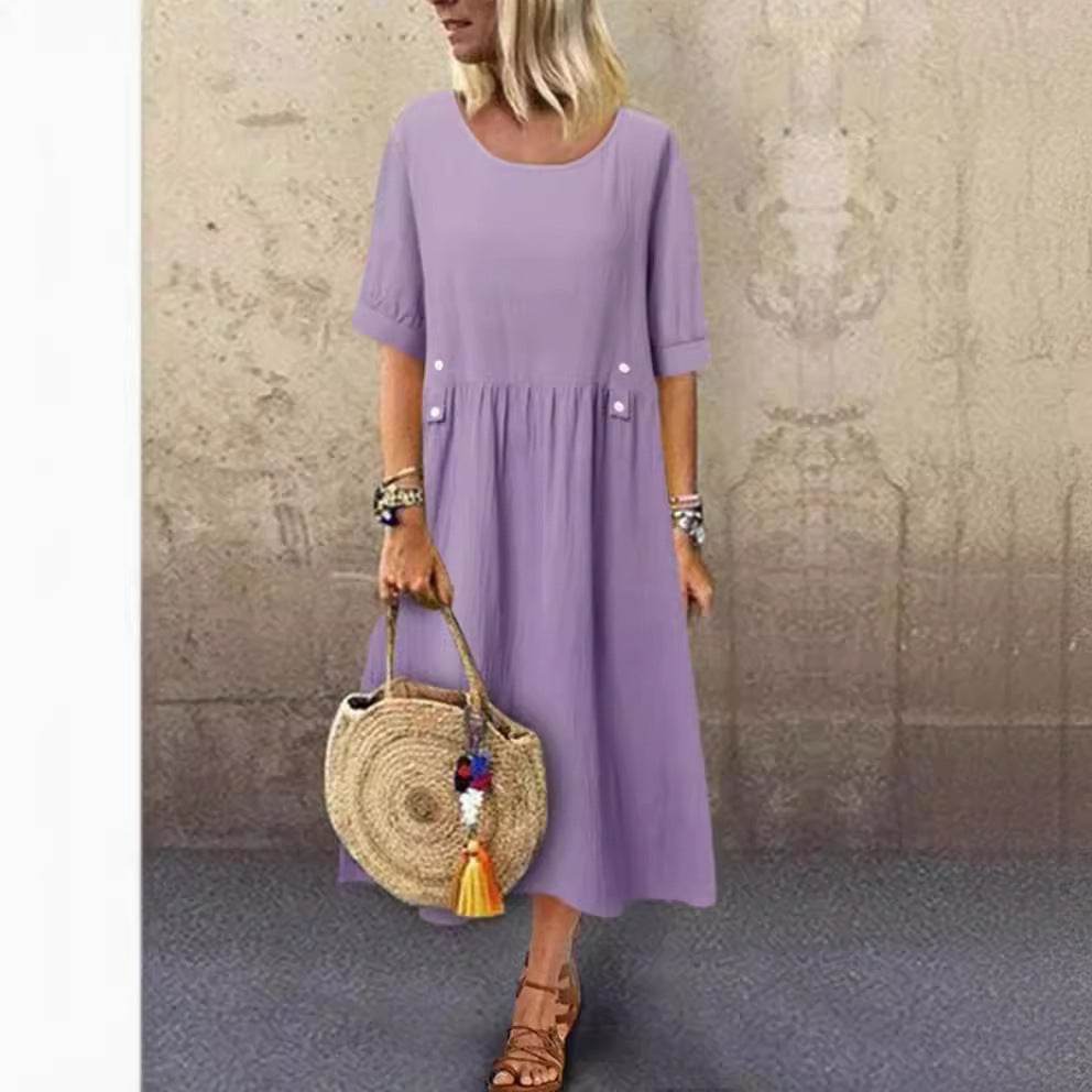 Plus Size Casual Round Neck Shirt With Half Sleeve Button Dress Women