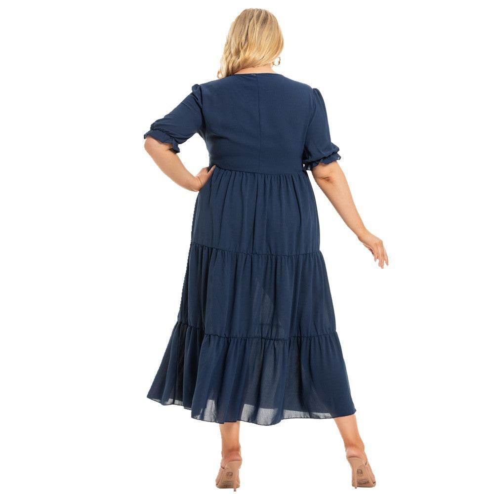 Our one-piece dress is specifically designed to flatter and fit plus-size women, offering a comfortable and breathable experience with its soft, stretchy fabric and short sleeves. The modern and versatile look is suitable for various occasions, from casual outings to semi-formal events, ensuring you always look your best.