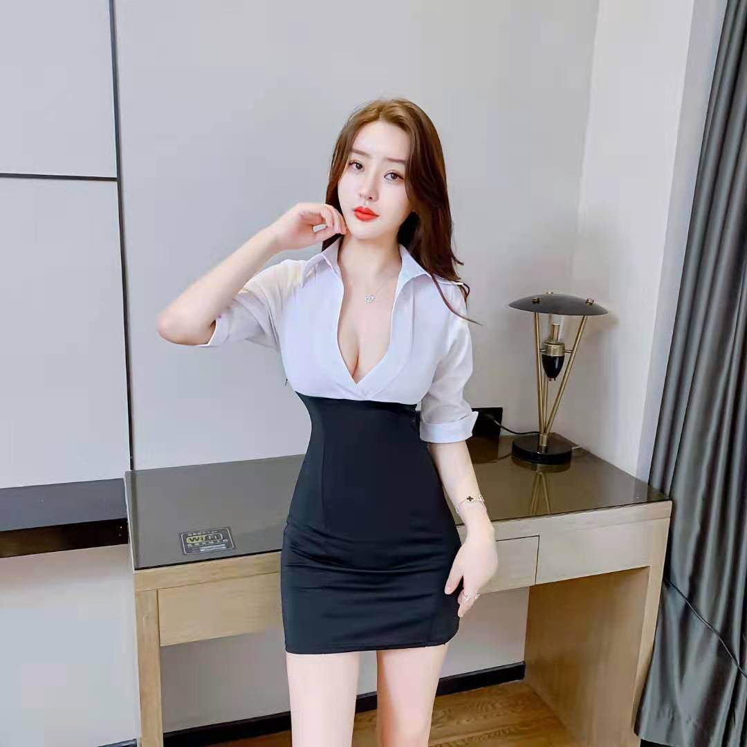 Work Clothes Low-cut Sexy Deep V Bag Hip Dress