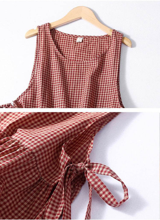 Sleeveless Lace Work Clothes Cotton Linen One-piece Dress - Mubimart
