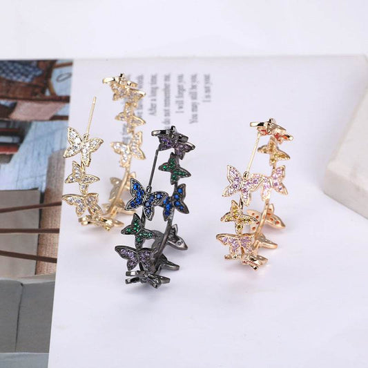 Butterfly Big Hoop Earring Full Cubic Zircon Circle Earrings For Women Girls Rhinestone Round Earring Jewelry Good Gift