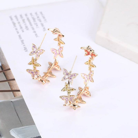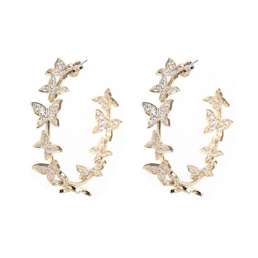 Butterfly Big Hoop Earring Full Cubic Zircon Circle Earrings For Women Girls Rhinestone Round Earring Jewelry Good Gift