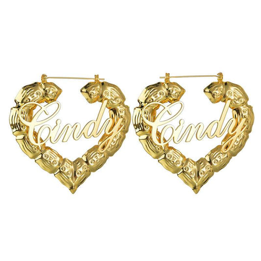 Personality Women Fashion Bamboo Hoop Earrings Letter Queen Love Sexy Dangle Earrings