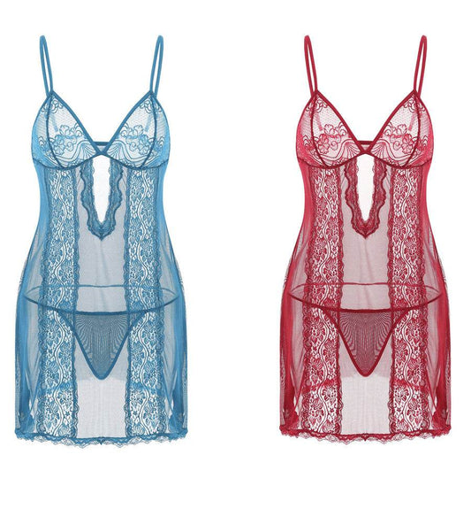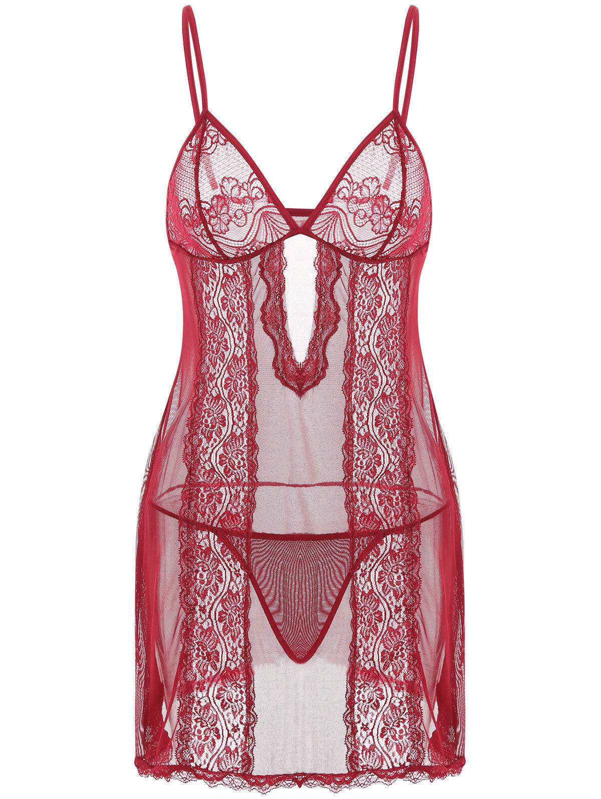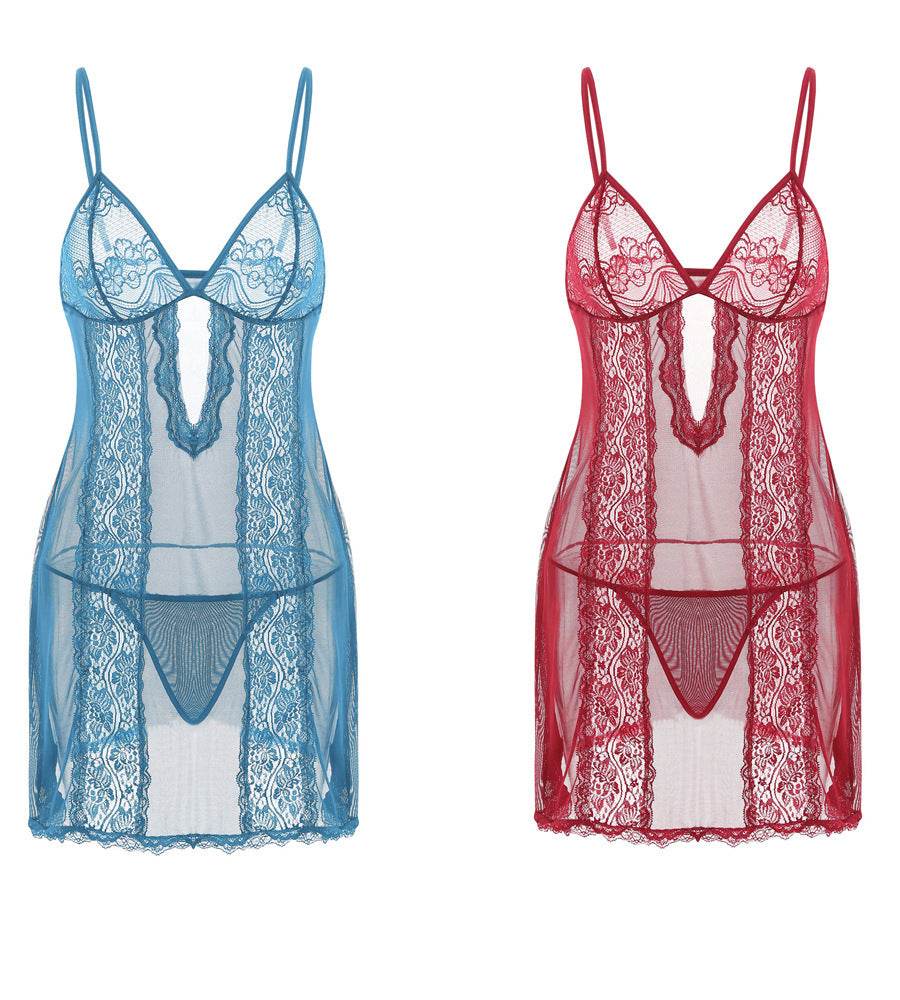 Lace Sling Long Skirt See-through Plus Size Nightdress Panties
