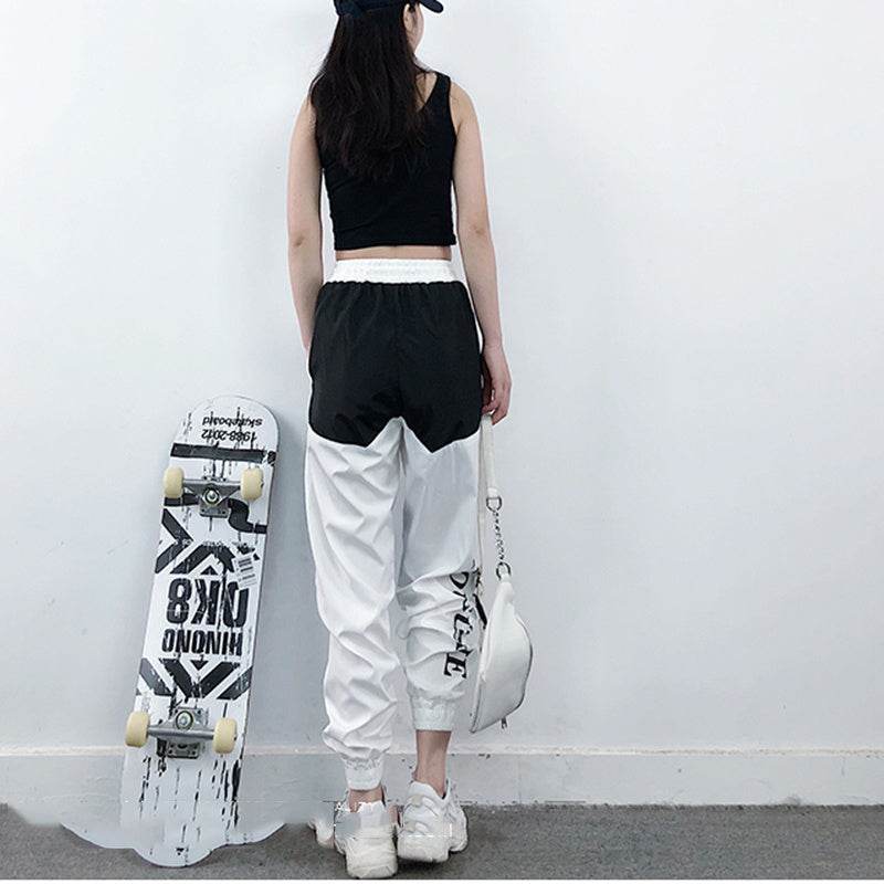 High Waist Letter Spliced Cargo Pants Women Loose Harajuku