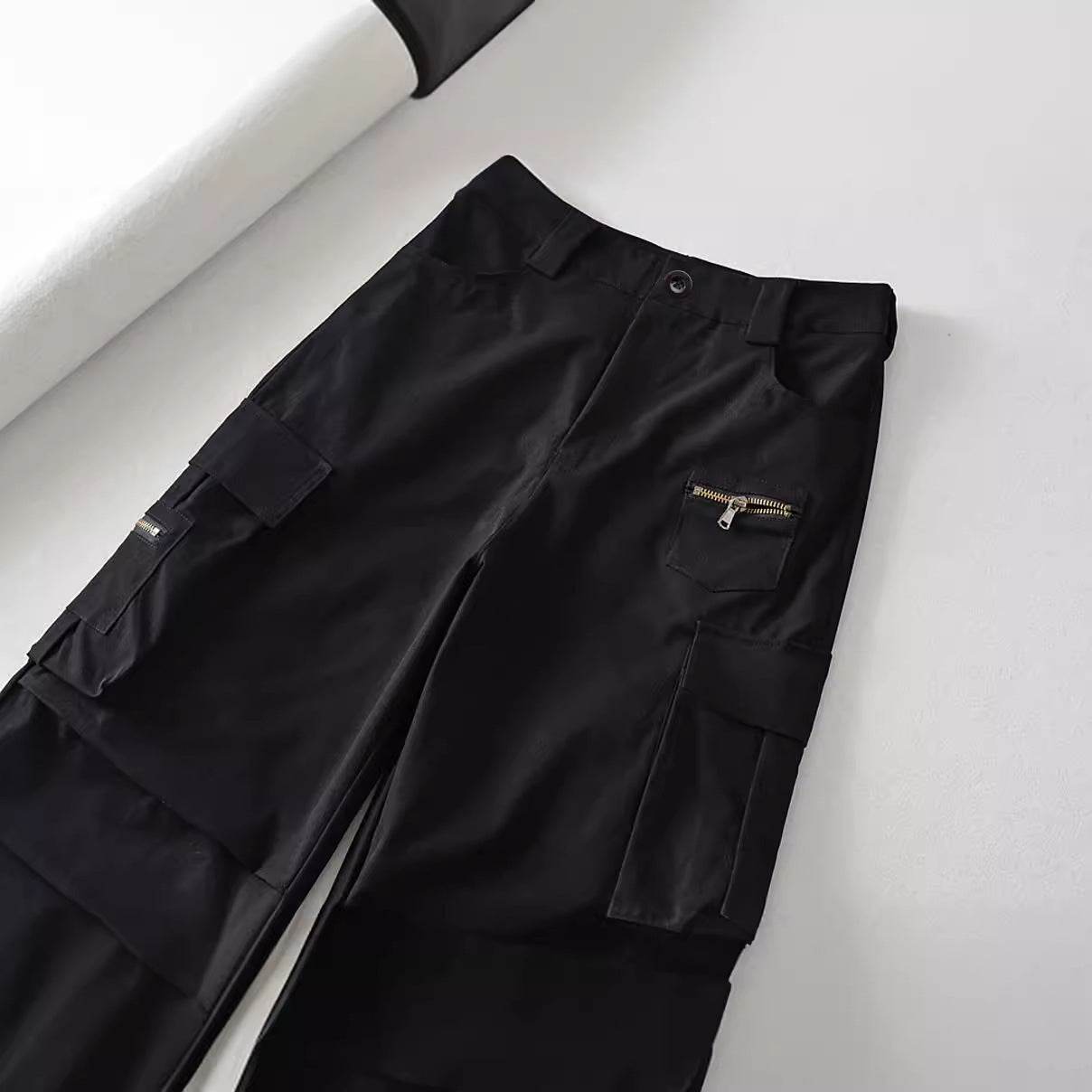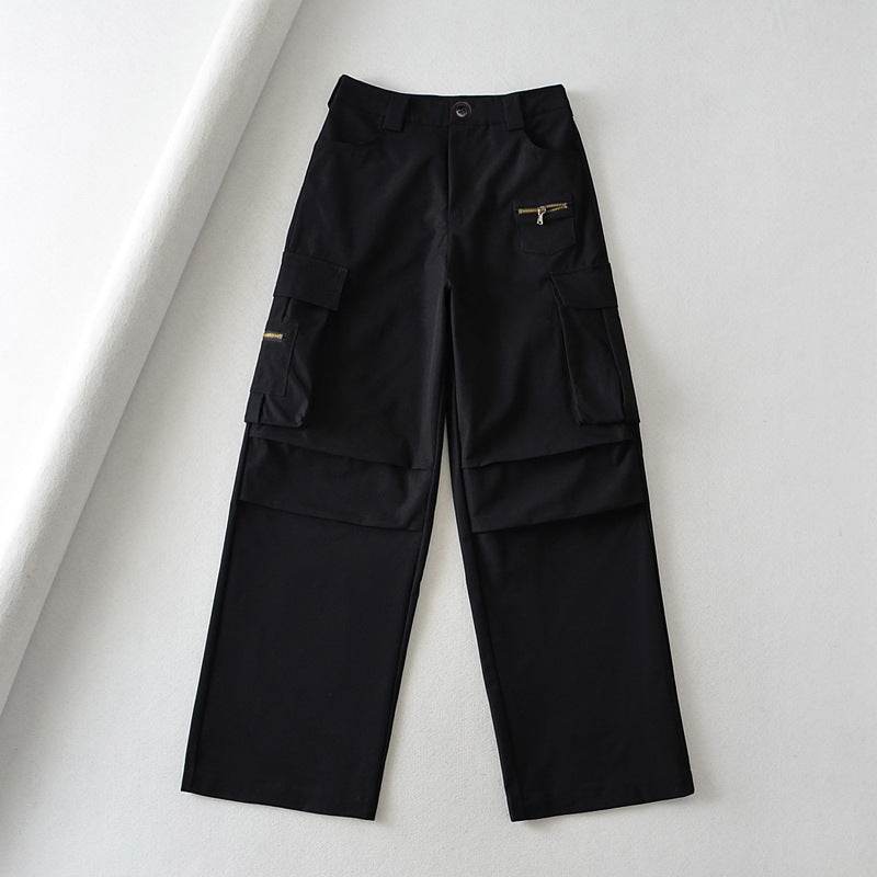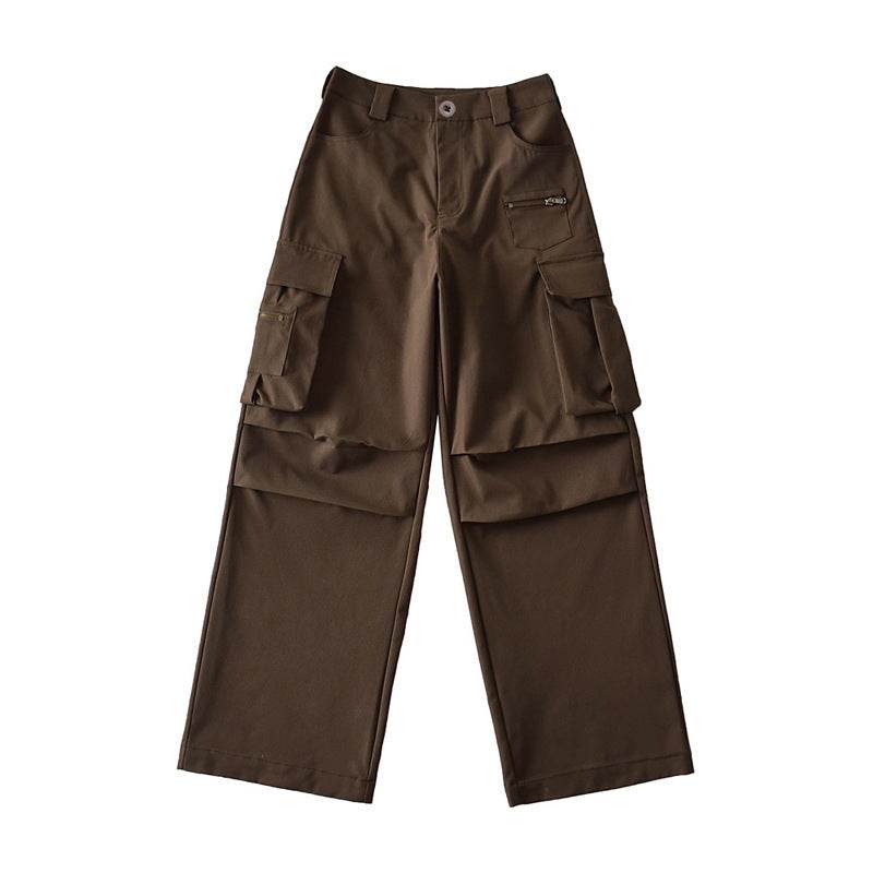 Retro High Waist Multi-pocket Cargo Pants Women - Mubimart