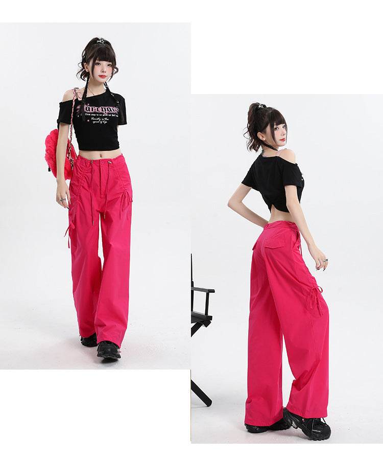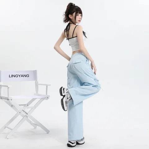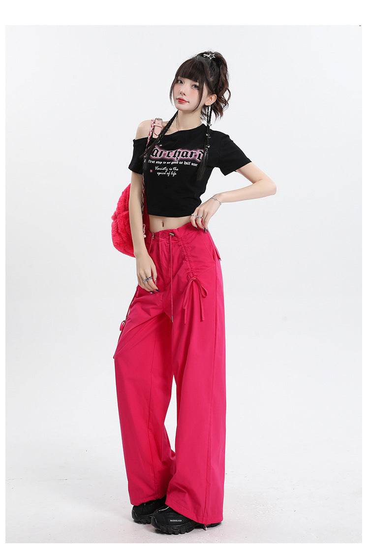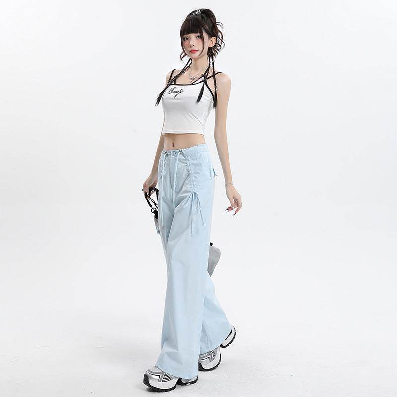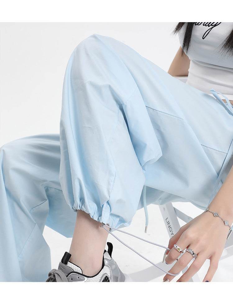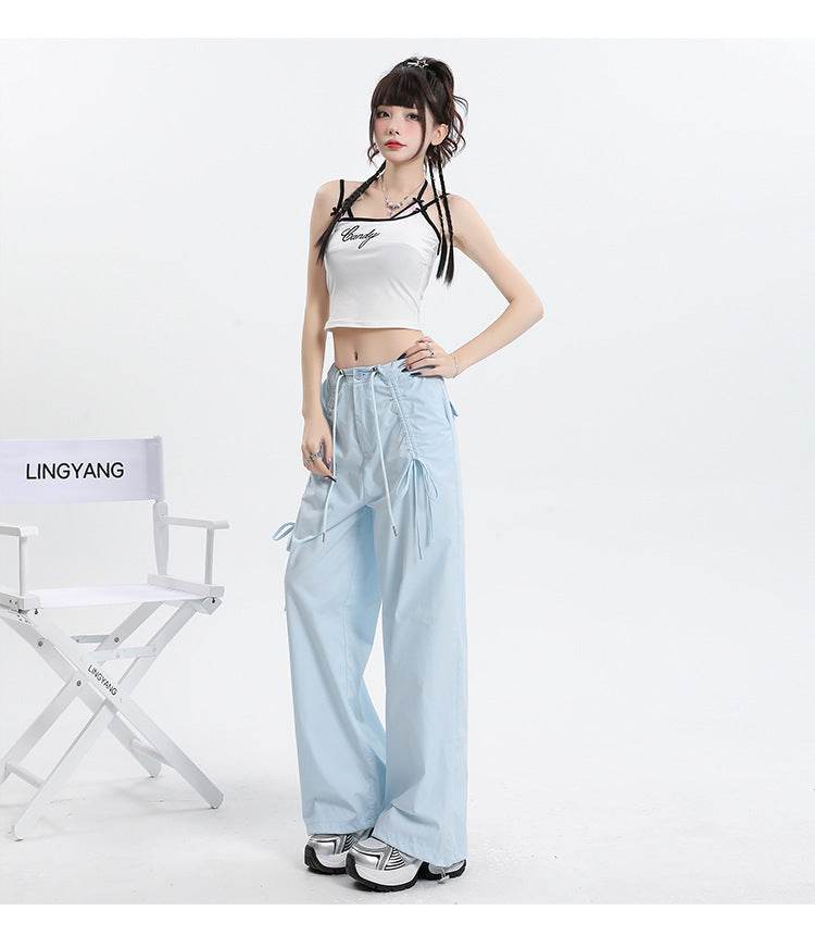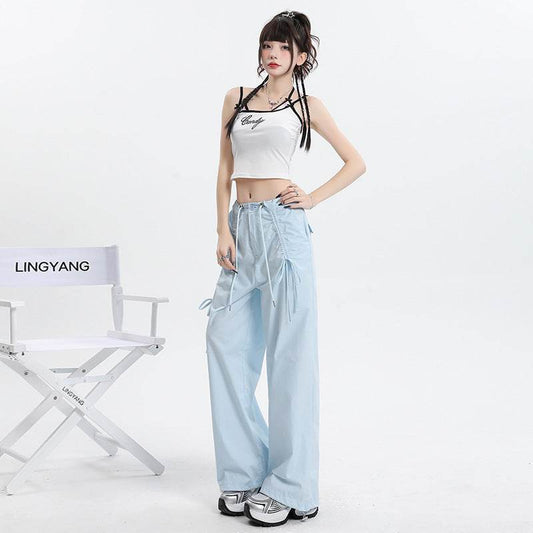 Straight Cargo Pants Women Bow Drawstring Wide Leg Track Pants