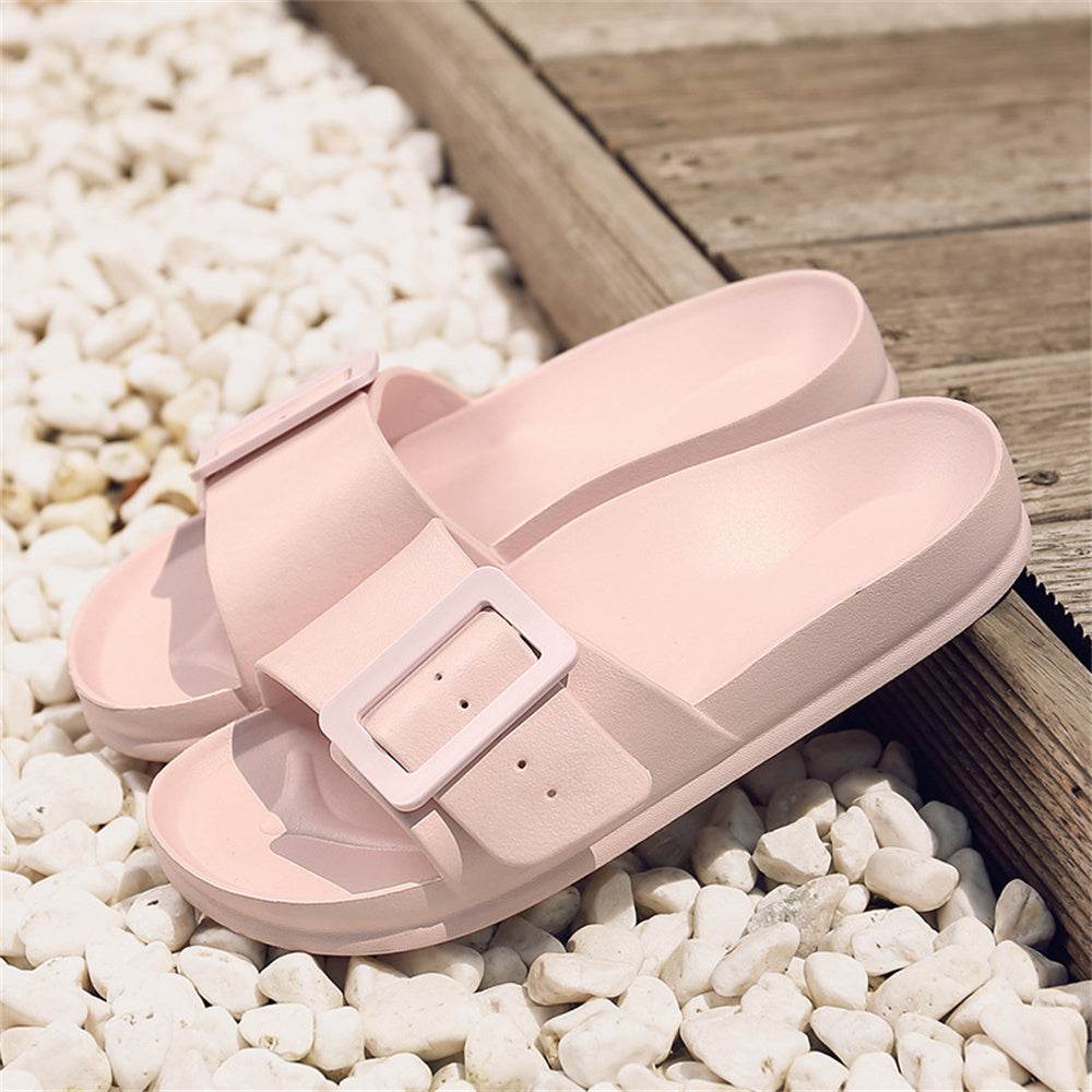 Solid Buckle Home Slippers Summer Non-slip Floor Bathroom Slipper Women Garden House Shoes