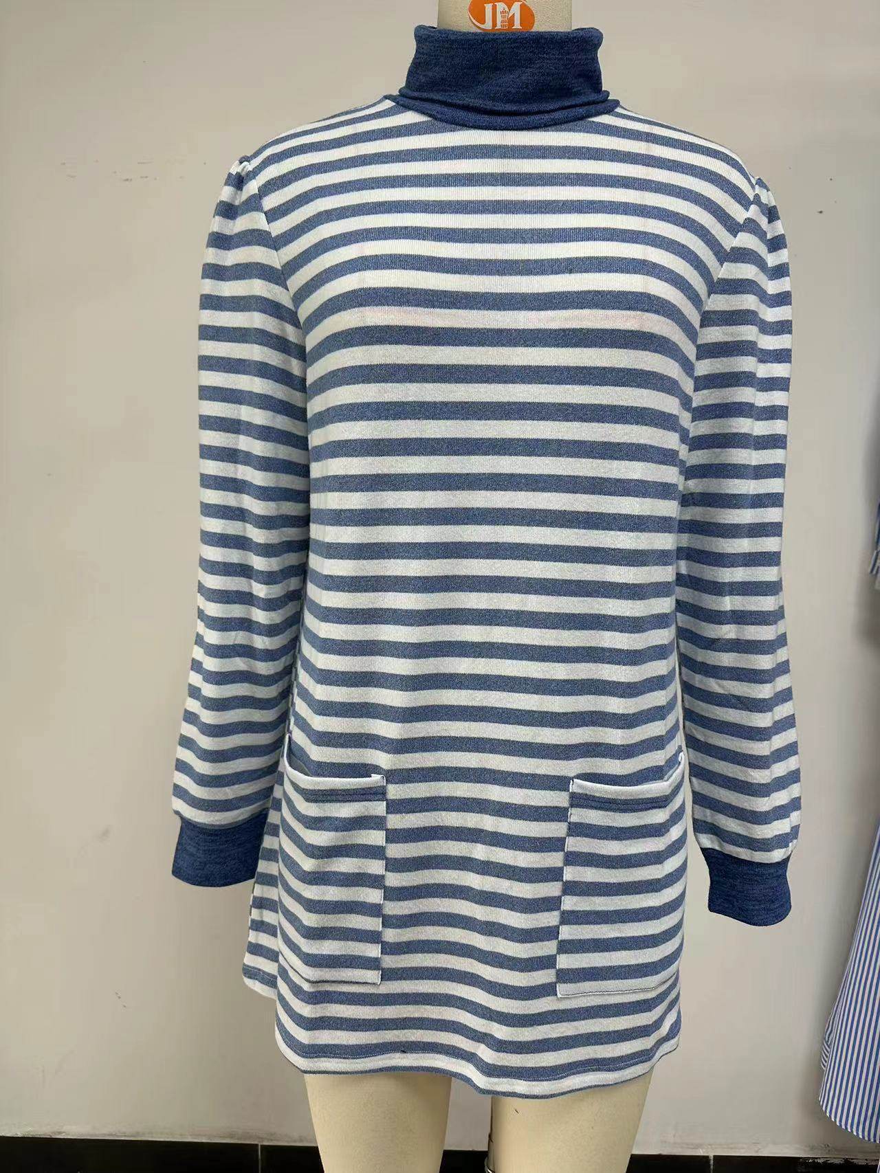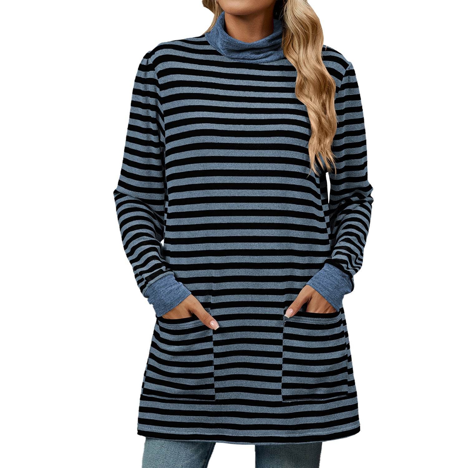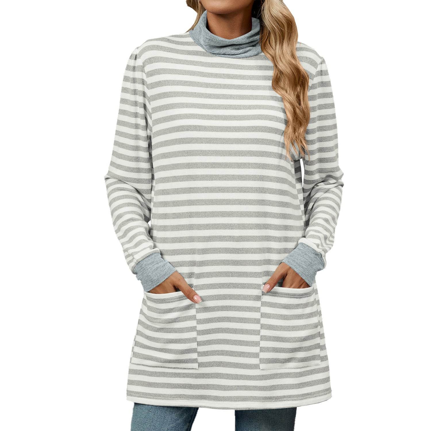 Fashion Striped Print Long Sweatshirt With Pocket Loose Long Sleeve Pullover T-shirt Top For Womens Clothing