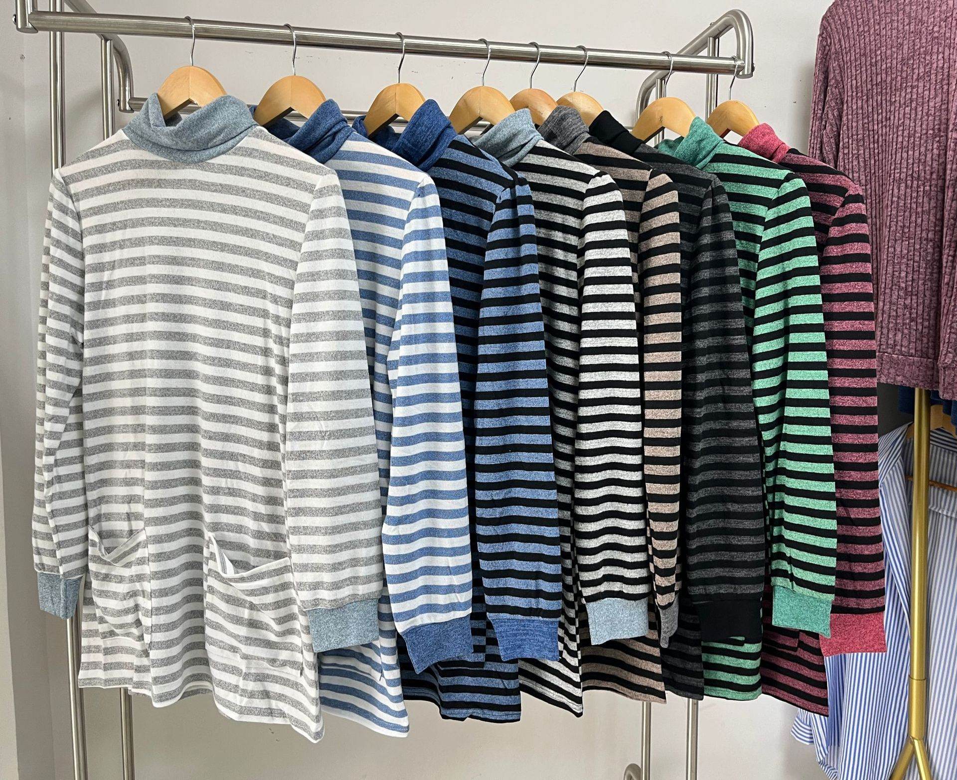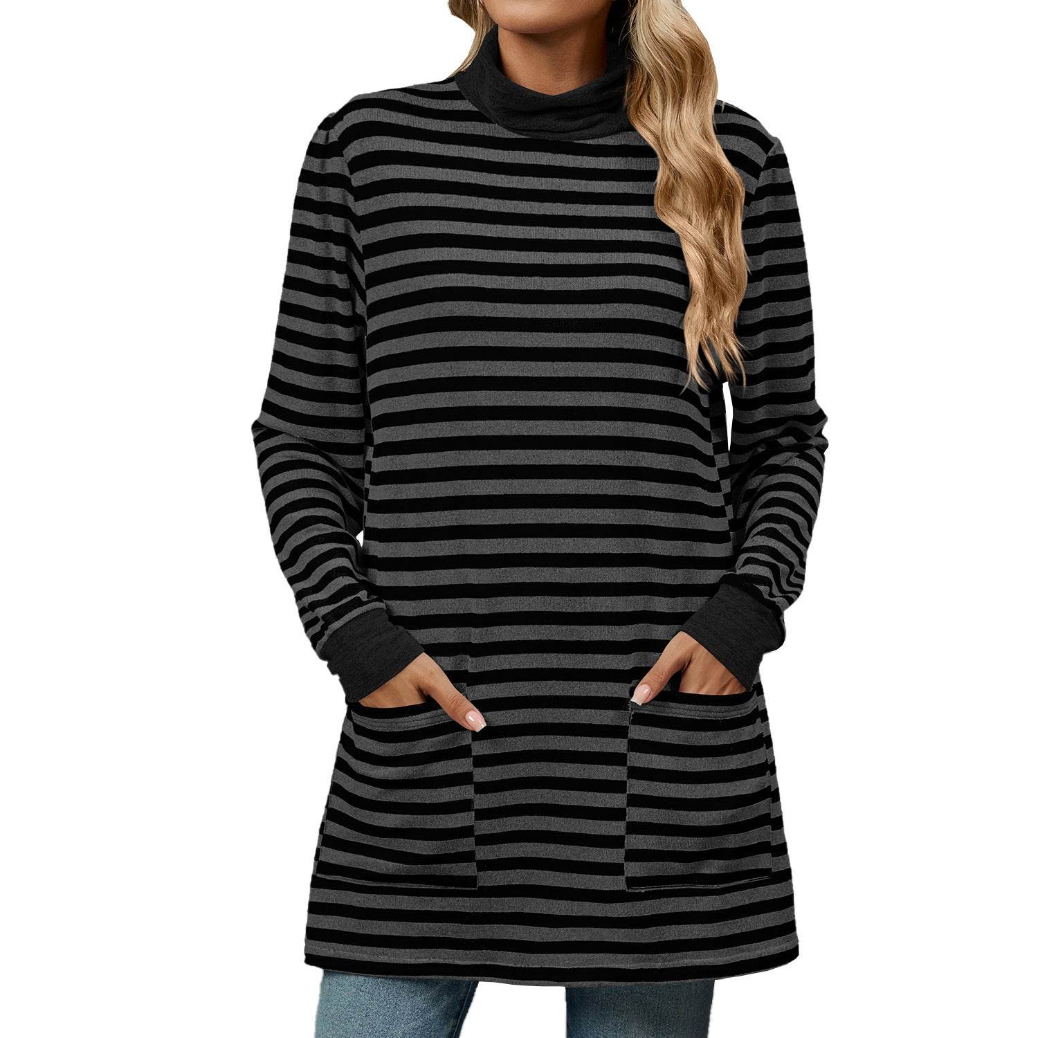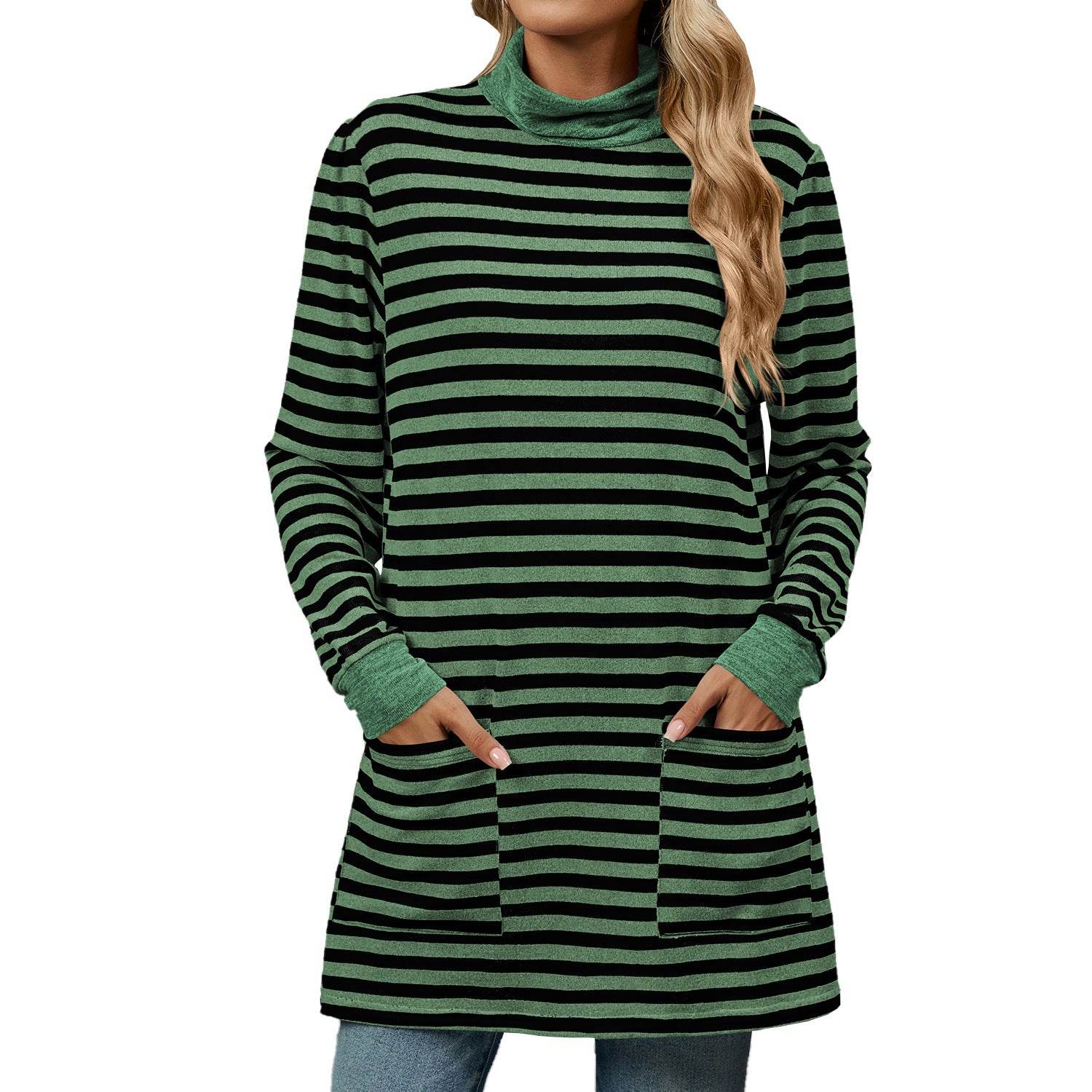 Fashion Striped Print Long Sweatshirt With Pocket Loose Long Sleeve Pullover T-shirt Top For Womens Clothing