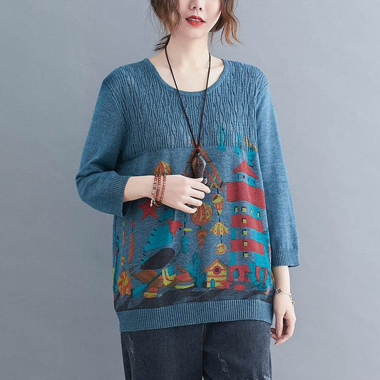 Literary Plus Size Knitted Loose Pullover Top - Mubimart