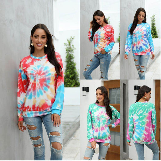 Women's Thin Pullover Plus Size Tie-dye Printed Gradient Pullover Sweatshirt Long Sleeve Harajuku Tops Femme New - Mubimart