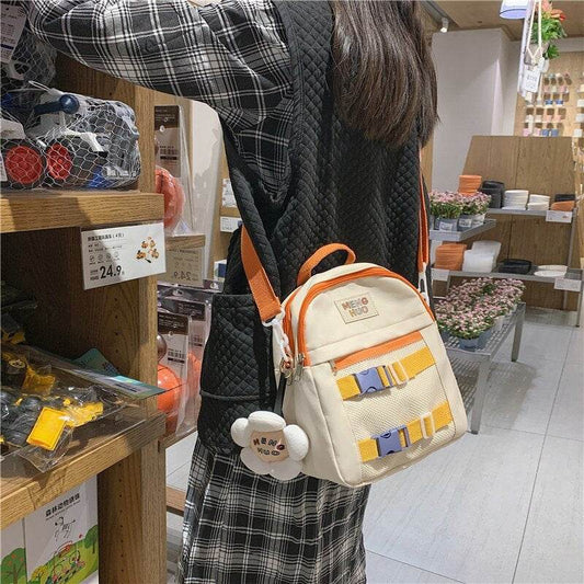 Literary Ribbon Lock Canvas Colorblock Satchel