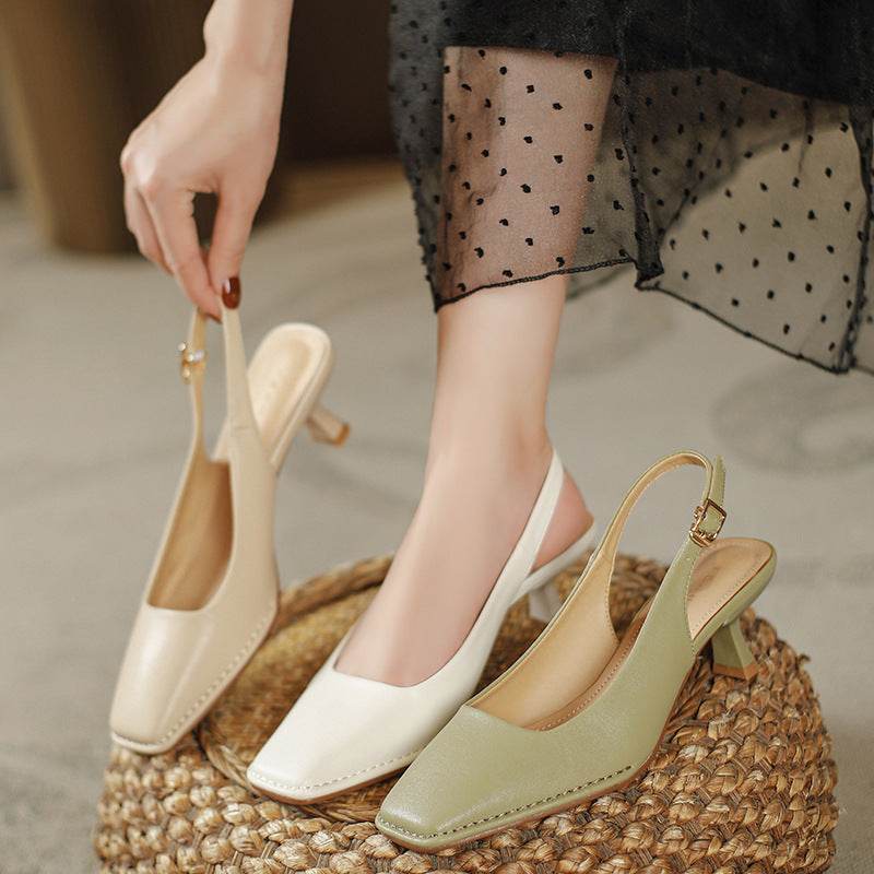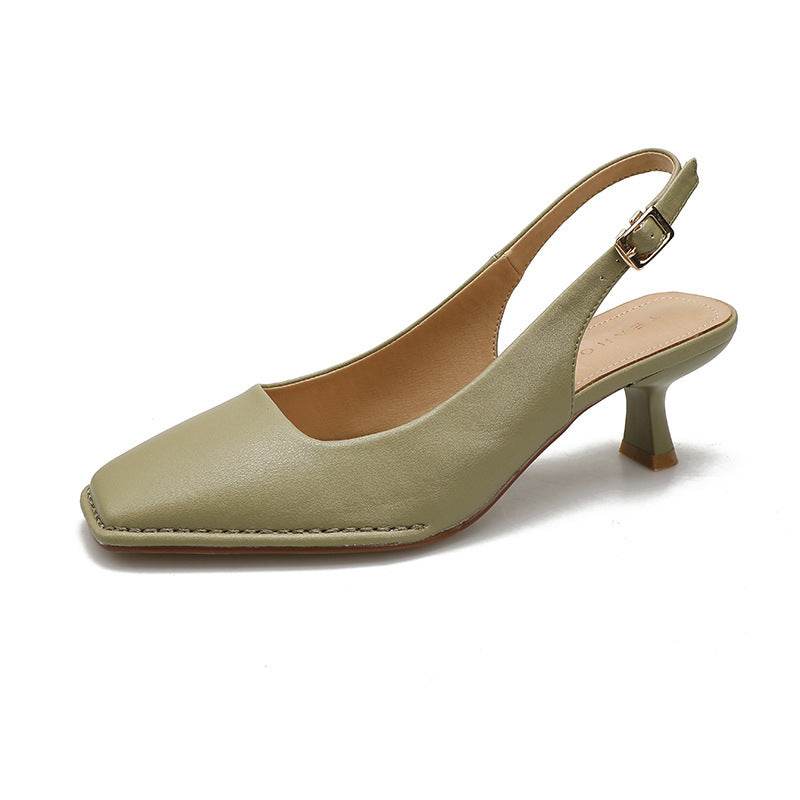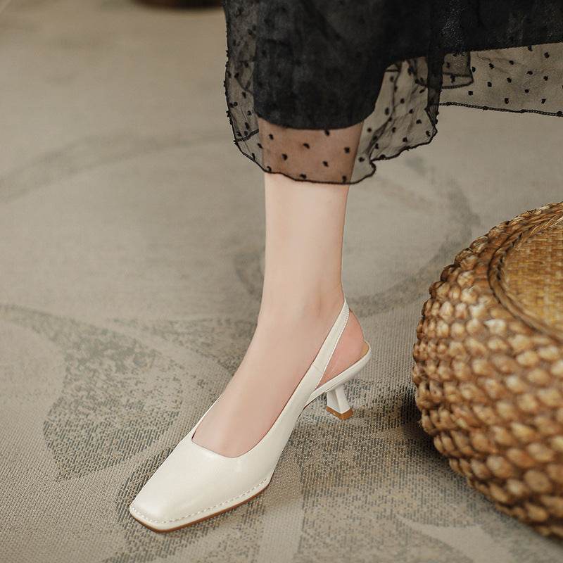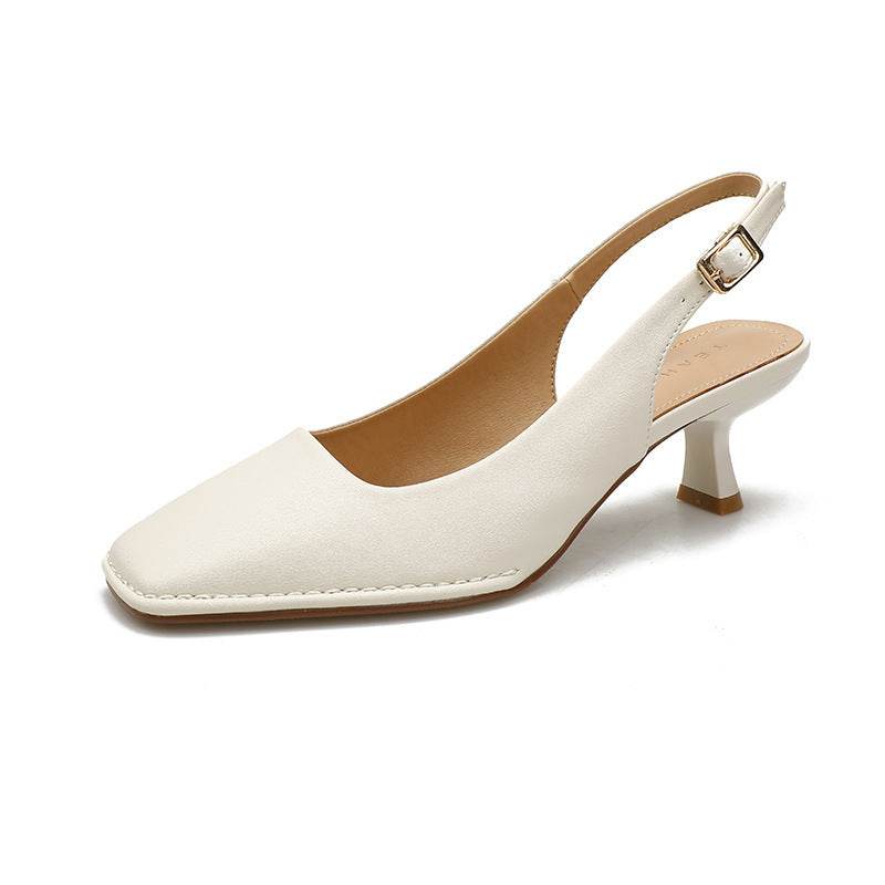 Classic Style Square Head Kitten Heel French Toe Cap Slingback Sandals - Mubimart