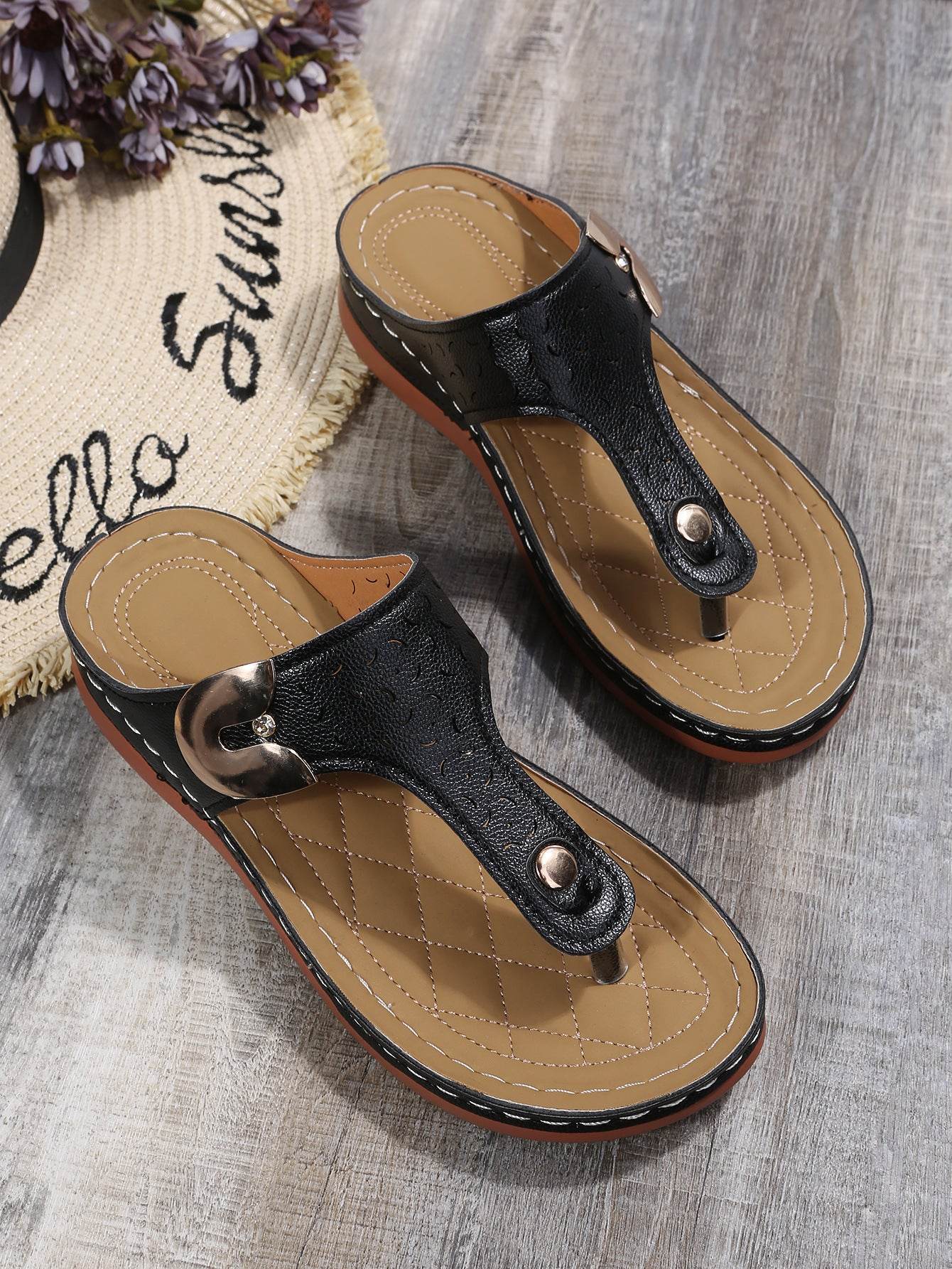 European And American Fashion Wedge Heels Retro Flip Flops Beach Slippers - Mubimart