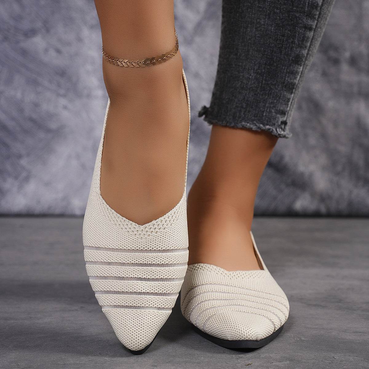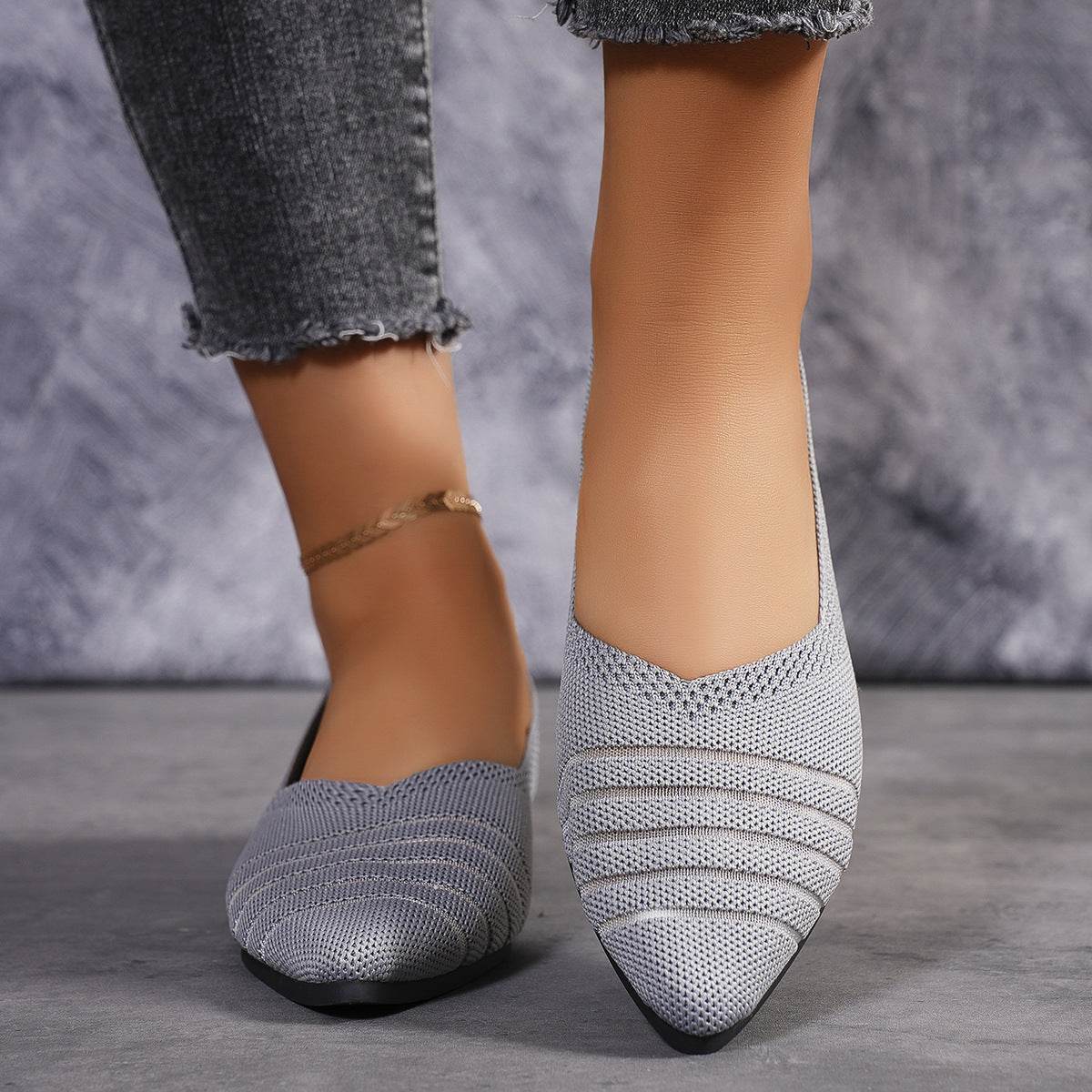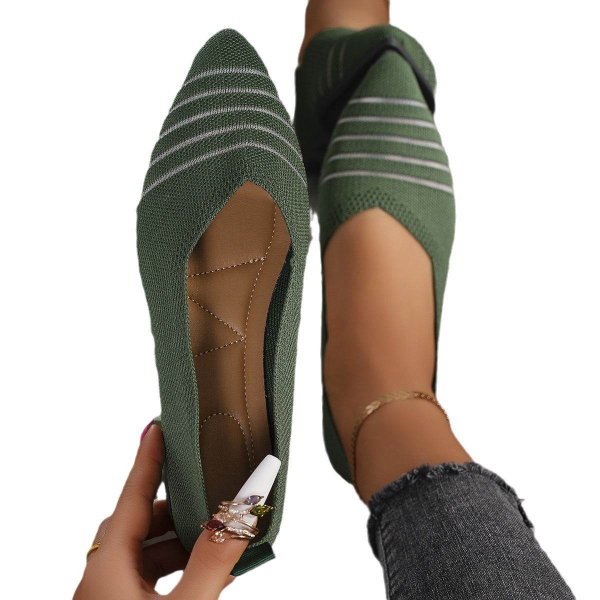 Flyknit Shoes Plus Size Women's Flat Pointed Toe