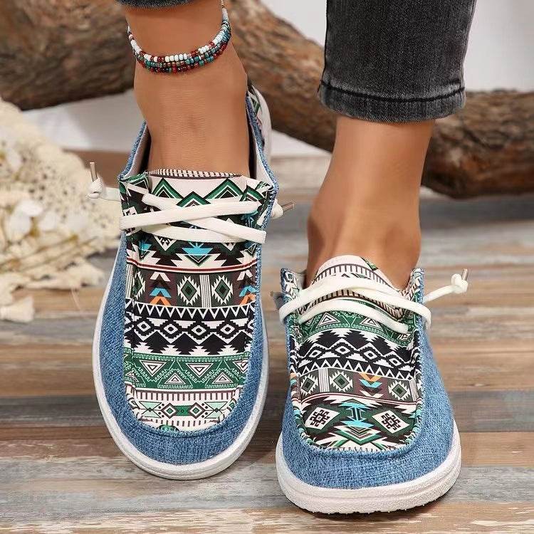 New Print Flats Shoes Summer Spring Casual Canvas Loafers For Women - Mubimart