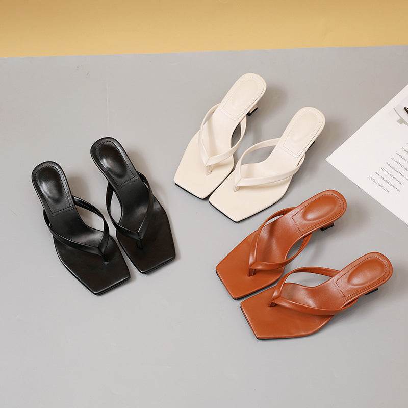 Square-Headed Kitten And Flip-Flops Beach Sandals And Slippers With Thick Heels - Mubimart