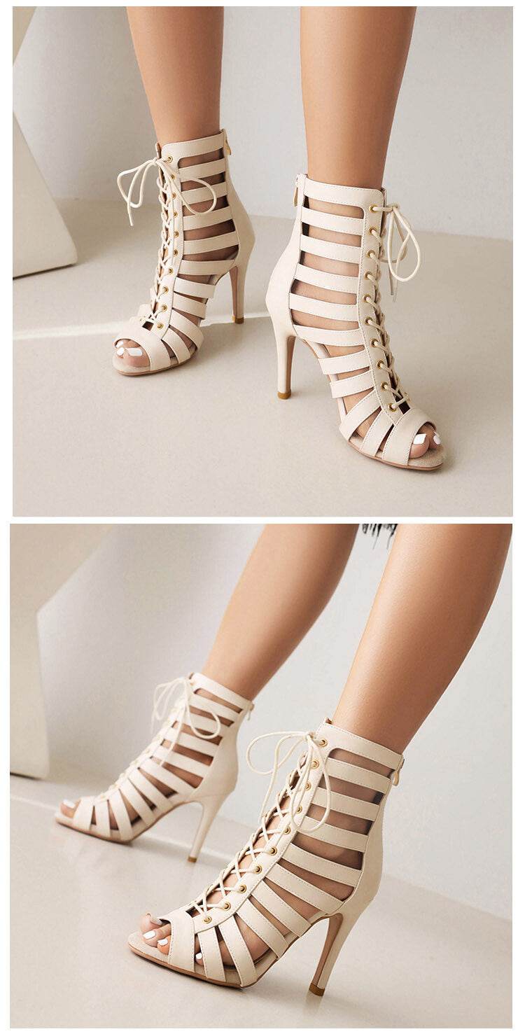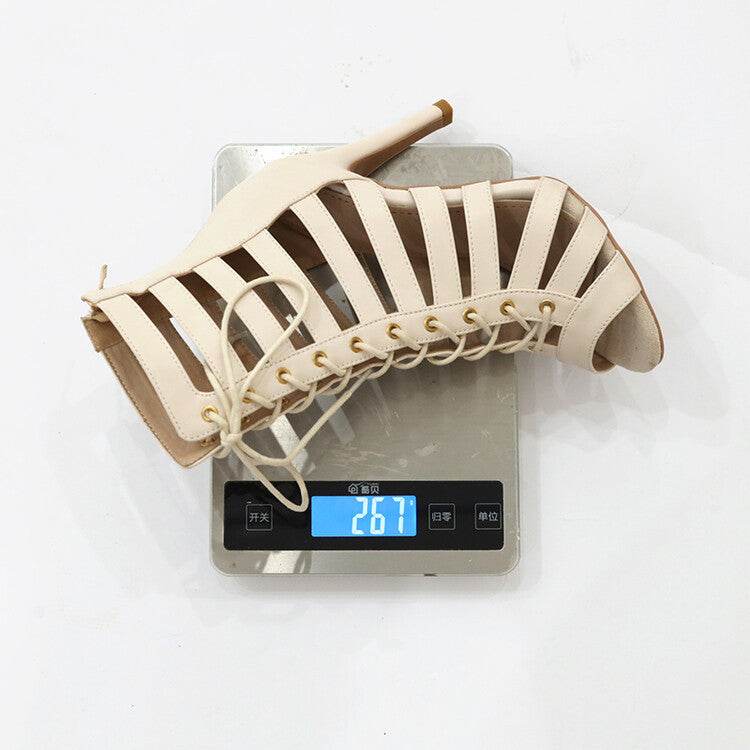 Summer Open Toed High Heel Lace-up Sandal Boots