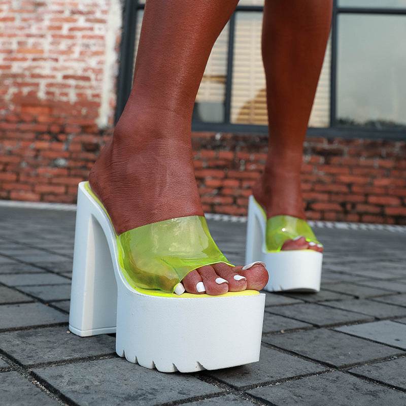 Transparent Slipper With Chunky High Heel Platform Shoes