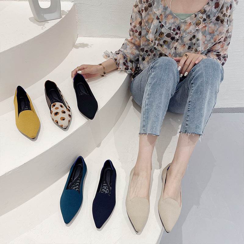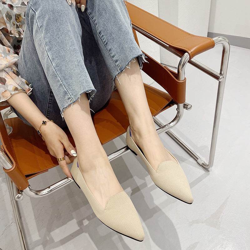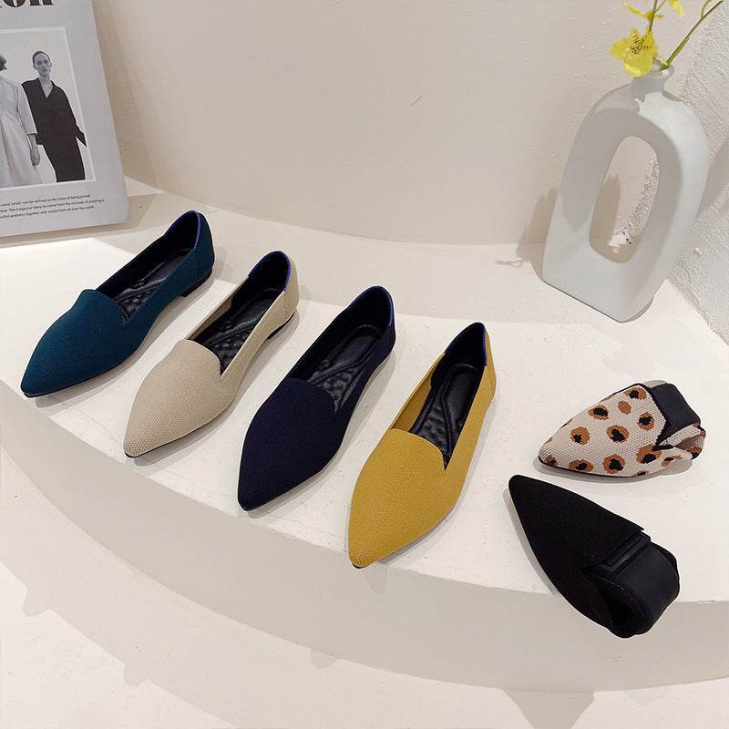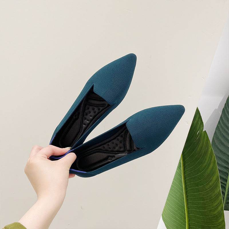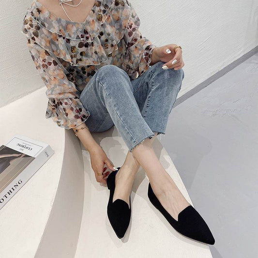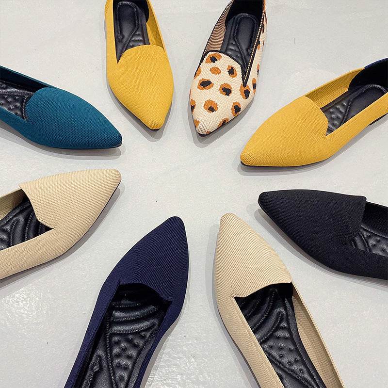 Women's Flying Pointed Toe Flat Knitted Roll Shoes