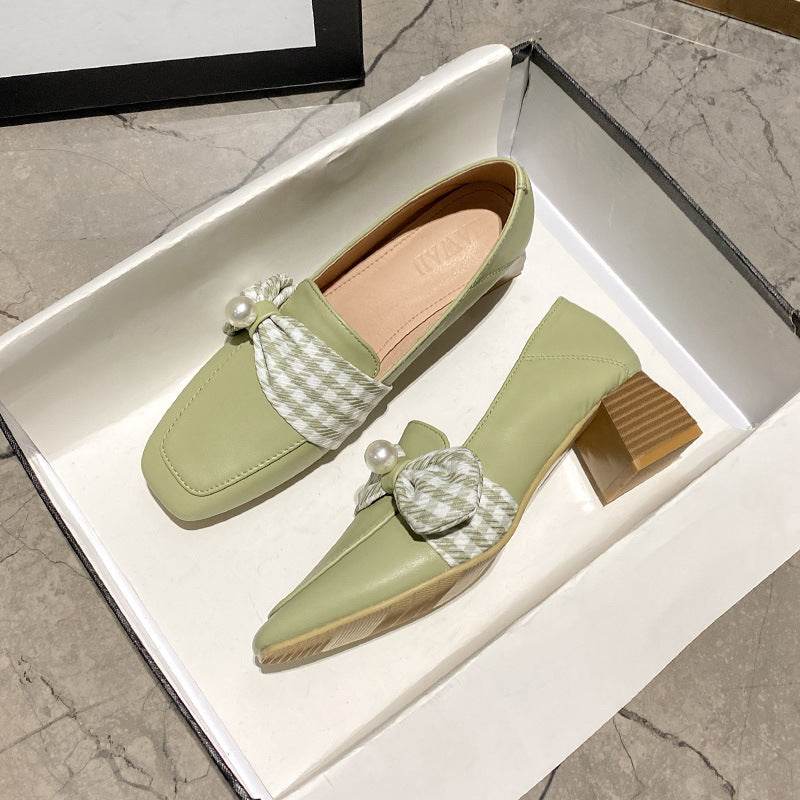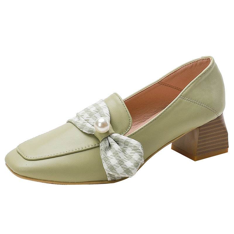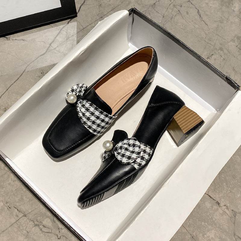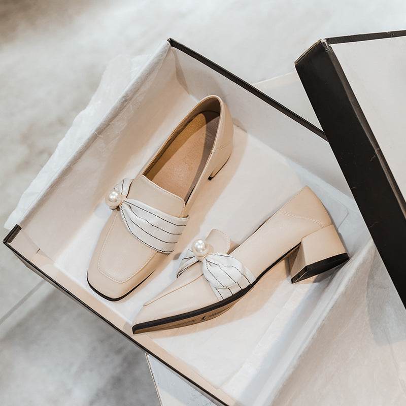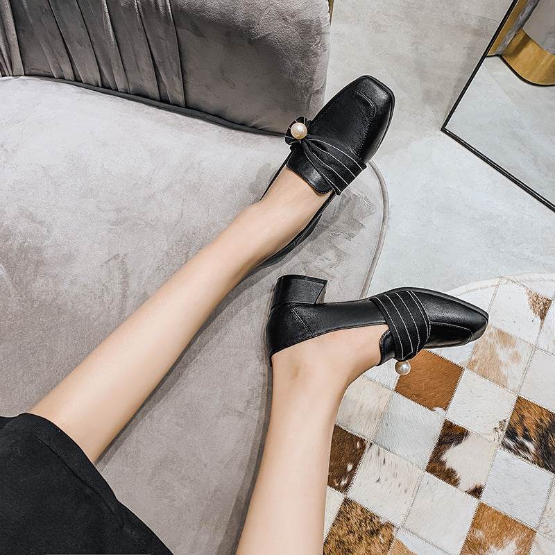 Women's High Heel Leather Shoes British Style Loafers Thick Heel Single Shoes Women - Mubimart