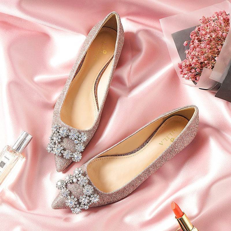 Women's Rhinestone Pearl Pointed Toe Flat Shoes