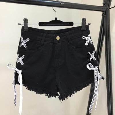 Vintage Snowflake Inelastic Women Denim Shorts With high Waist Straps Tassel Female Summer Shorts For Women's jeans
