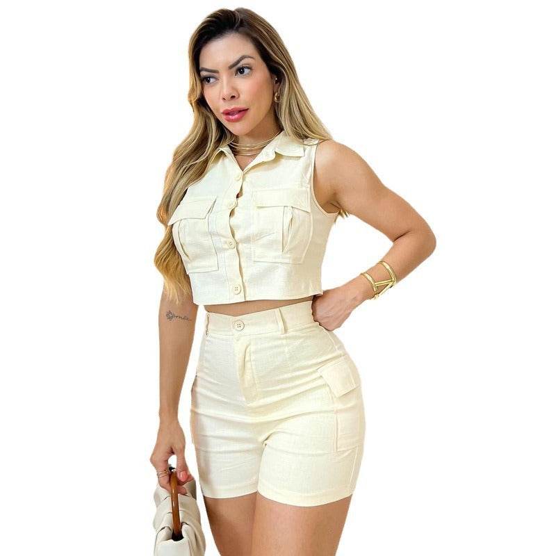 European And American Fashion Casual Set Women's Sleeveless Women Workwear Shorts