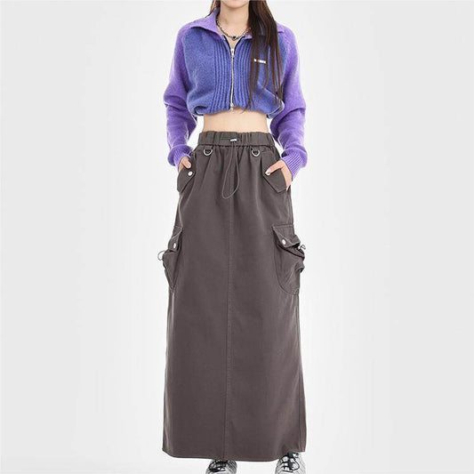 Retro Loose Pockets Workwear Skirt